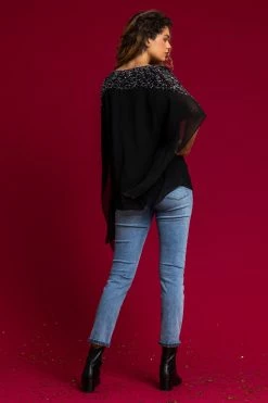 Roman Silver Sequin Embellished Chiffon Overlay Top