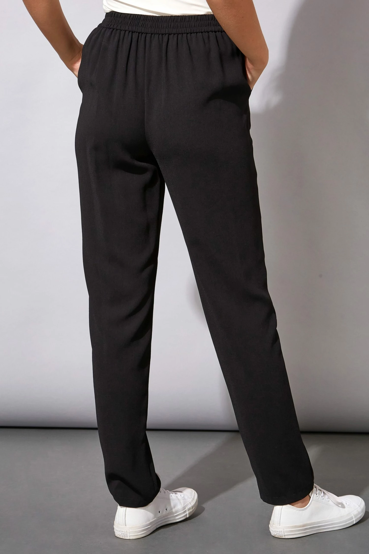 Be on top of your style game with these super comfortable tie front jogging bottoms. Fashioned with an elasticated drawstring waist, zip detail pockets and a sleek tapered leg, these full length joggers are versatile and can be worn from day to night to ensure ultimate comfort and style. Team these comfortable trousers with trainers and a casual lounge top for a sporty daywear look. These Joggers are regular length.