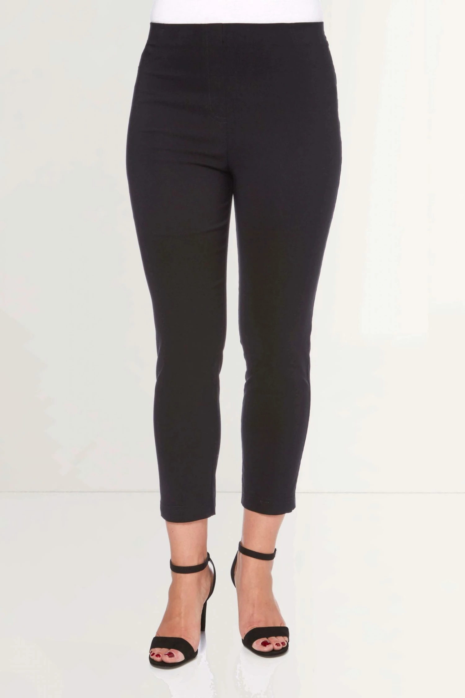 Crafted from a stretch fabric, these slim leg trousers fit smoothly to your curves. Made with a regular rise elasticated waistband and back pockets, these versatile trousers are stylish yet comfortable.