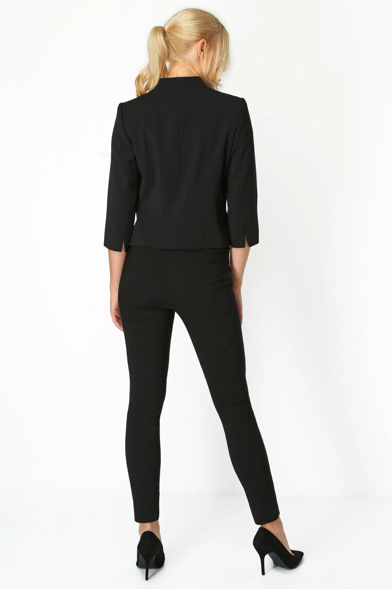 Work the tailored look this season with this chic lightweight jacket. Featuring 3/4 length sleeves and an edge to edge collar, this little number is perfect to layer over a sleek dress for a fancy event to keep you looking sophisticated, or over a pretty floral number you’re sporting for a wedding.