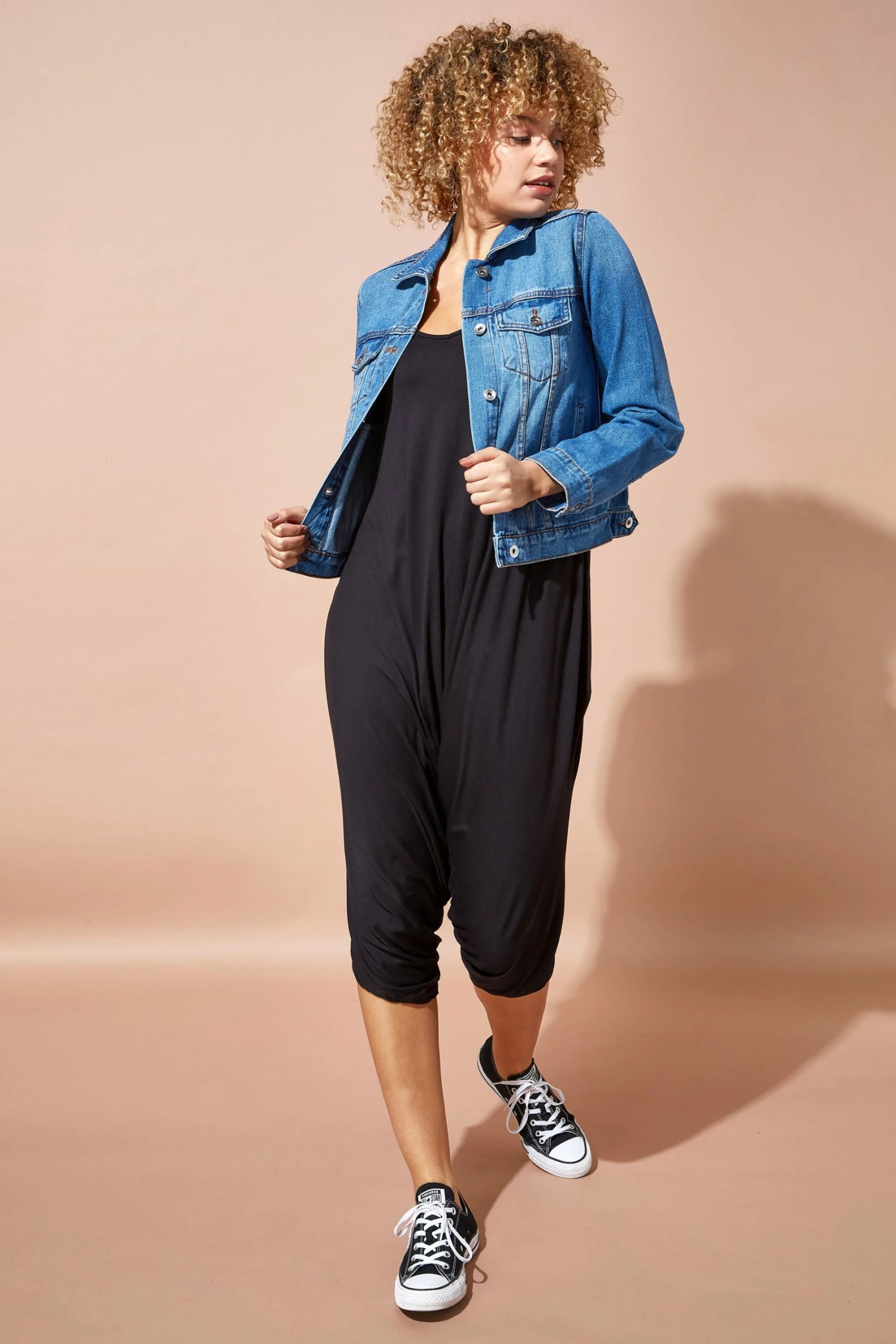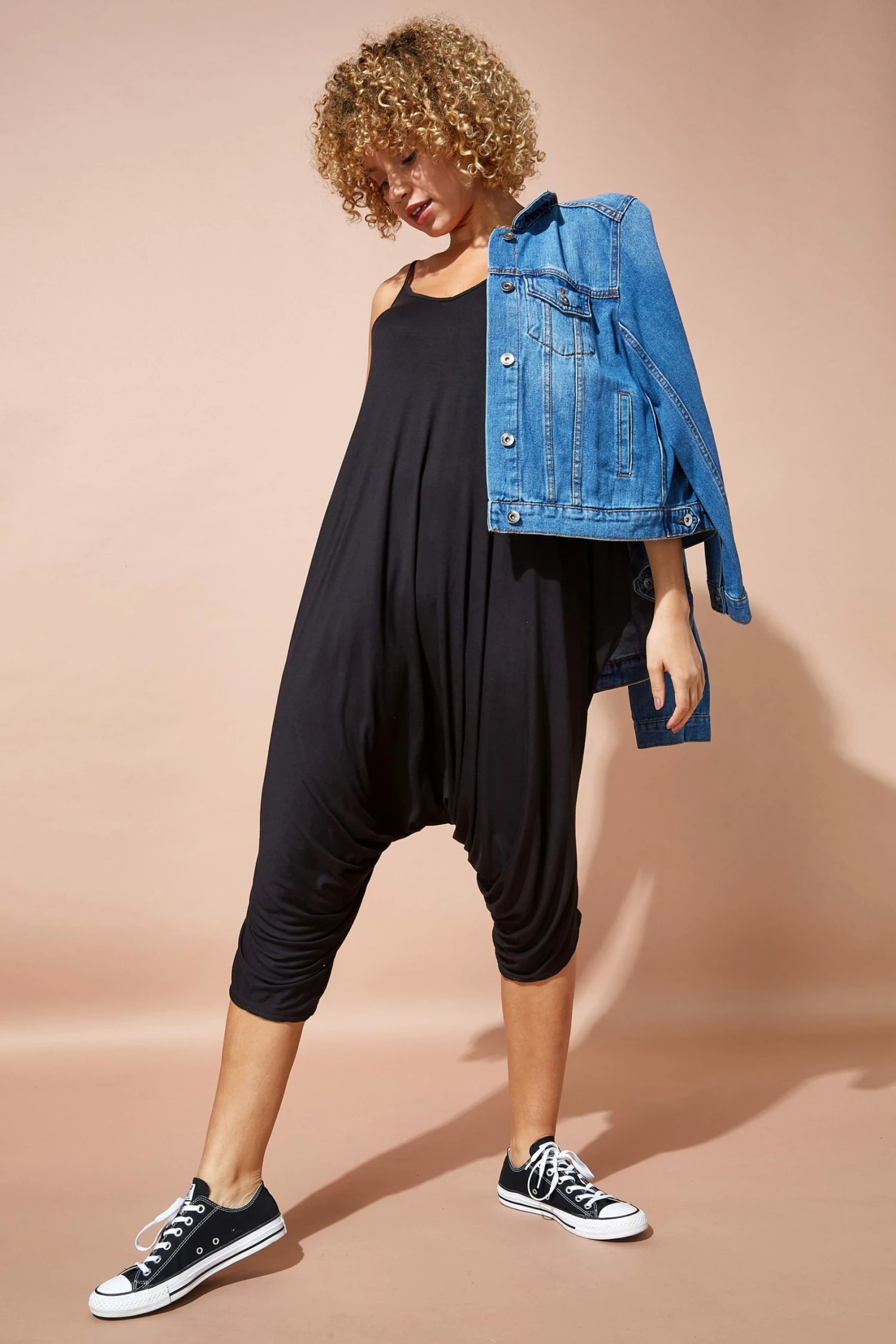 This v-neck jersey hareem jumpsuit is ideal for chilling at home this season or for packing in your holiday suitcase. Cut to a flattering mid calf length, this sleeveless hareem jumpsuit is lightweight and provides a comfortable and relaxed fit that makes it easy to wear on warmer days or for lounging in the house. Dress up or down with accessories and sandals for an effortlessly chic dressed down look.