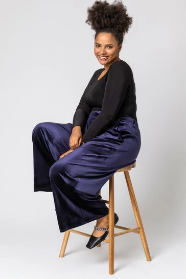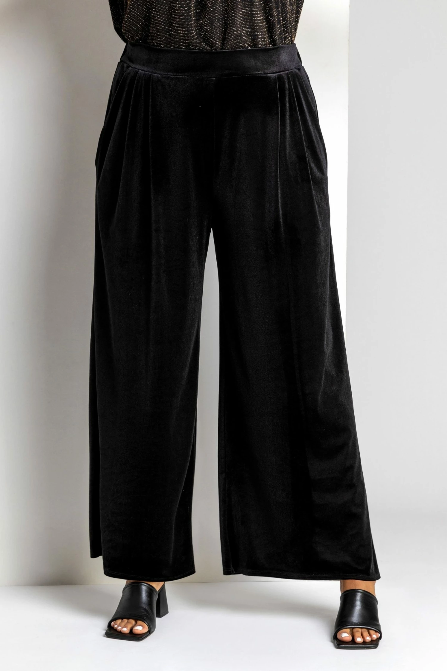 Add an eye-catching take on our classic wide leg trousers with this roman curve velvet edition! Featuring a waist trim detail and side pockets, these trousers are perfect for styling up or down, pair it with either a vest and jacket or heels and a top these trousers will have you looking effortlessly chic all season long.