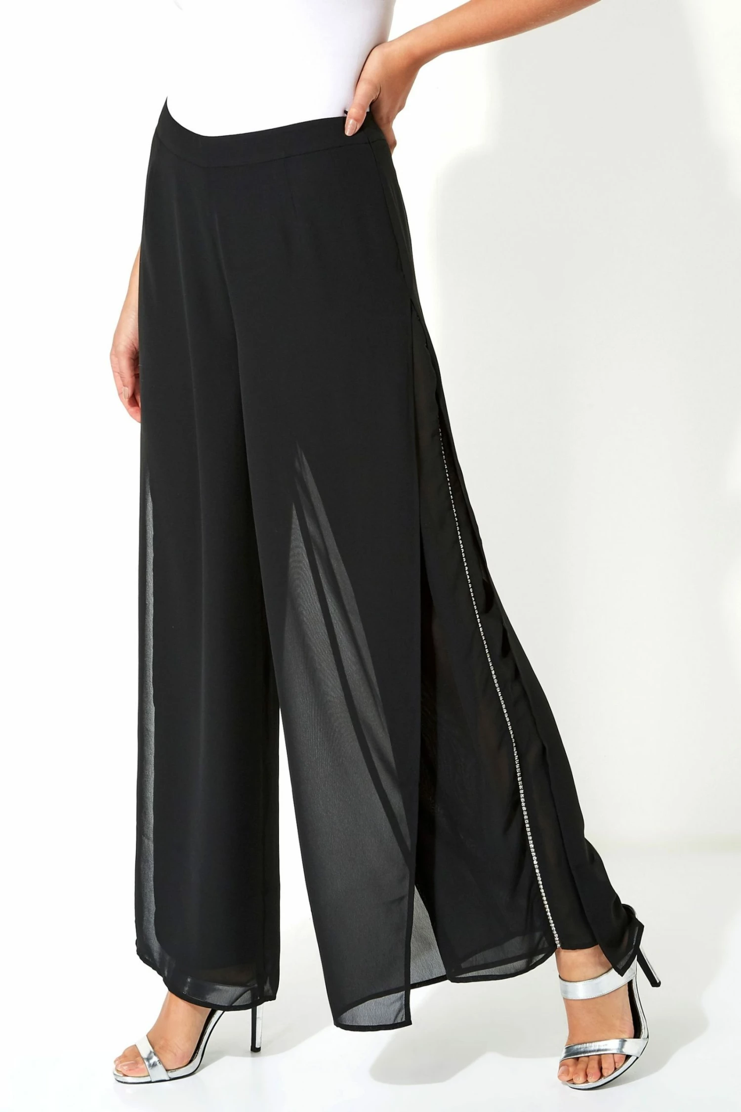 Sparkle all day in these stunning smart trousers. Adorned with shimmery diamante at the sides, these trousers add a glamorous touch to an everyday look. Match with sparkly heels and a clutch for a gorgeous evening look.