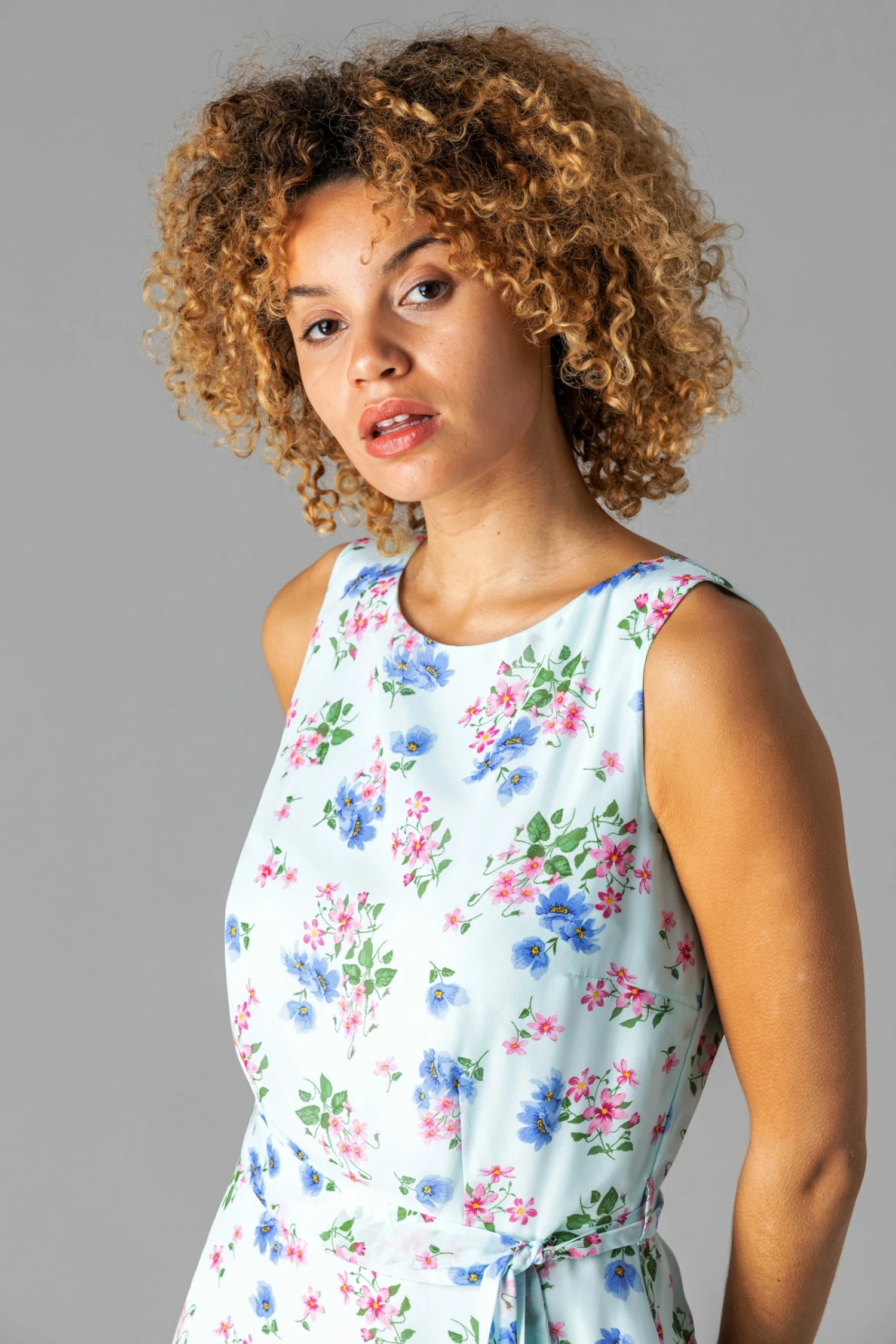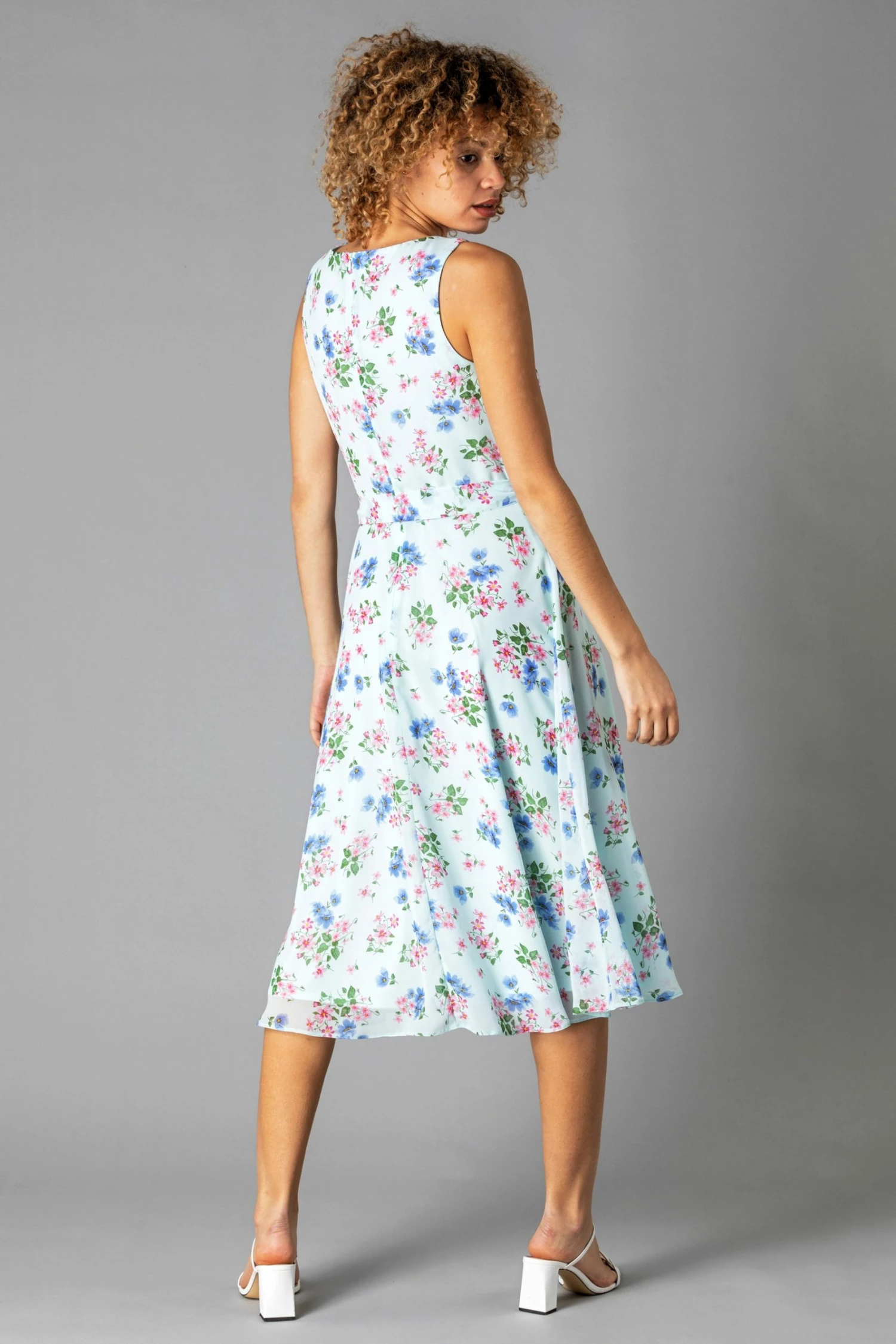 Go For A Fresh Look In This Stunning Fit And Flare Dress. Crafted From A Soft, Stretch Jersey Fabric, This Dress Is Adorned In A Beautiful Floral Print. Featuring A Slight Boat Neckline And A Flattering Front Tie Waist.