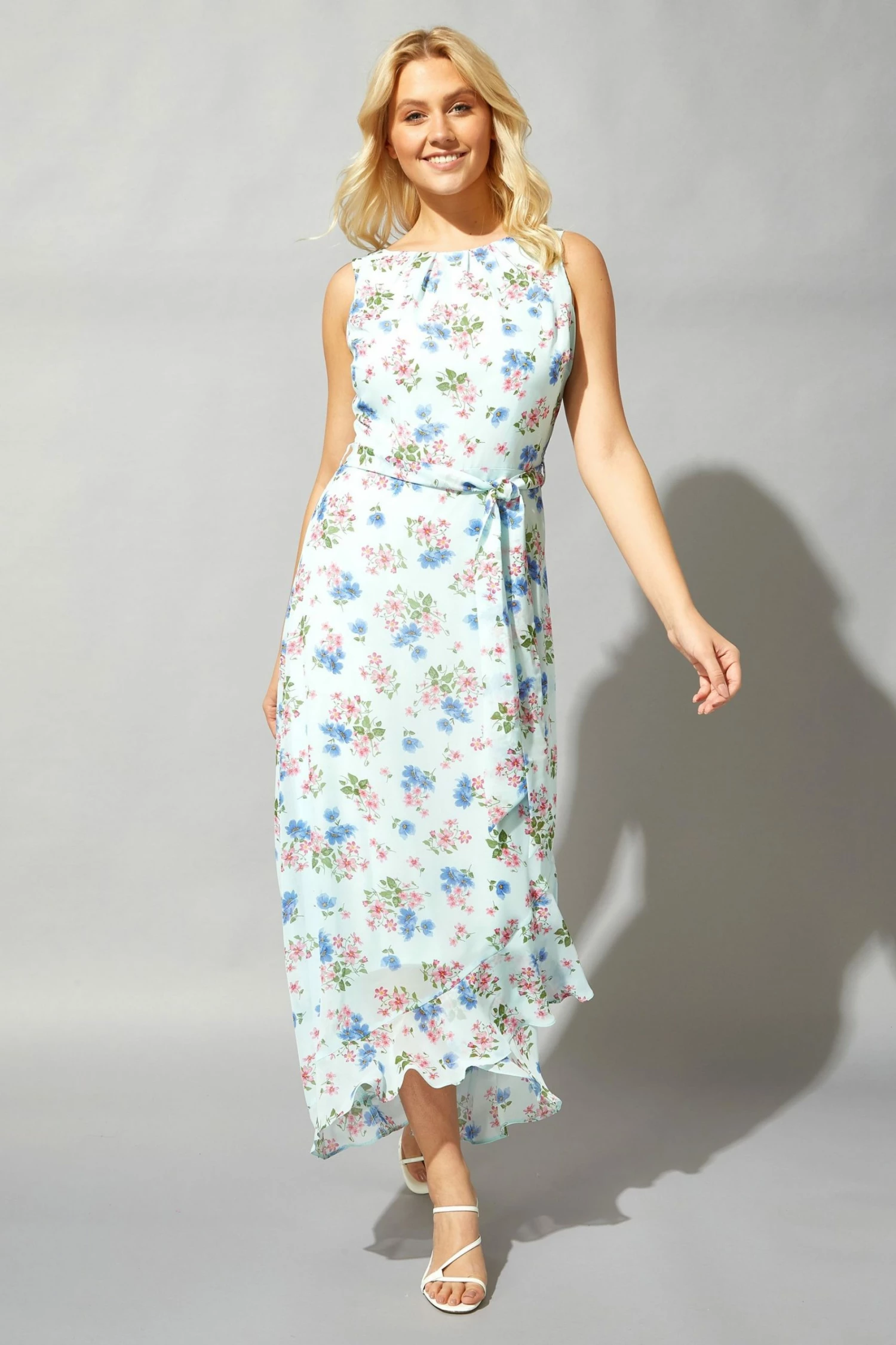 Go For A Fresh Look In This Stunning Floral Maxi Dress. Crafted From A Soft, Stretch Jersey Fabric, This Dress Is Adorned In A Beautiful Floral Print. Featuring A Slight Boat Neckline And A Flattering Front Tie Waist.
