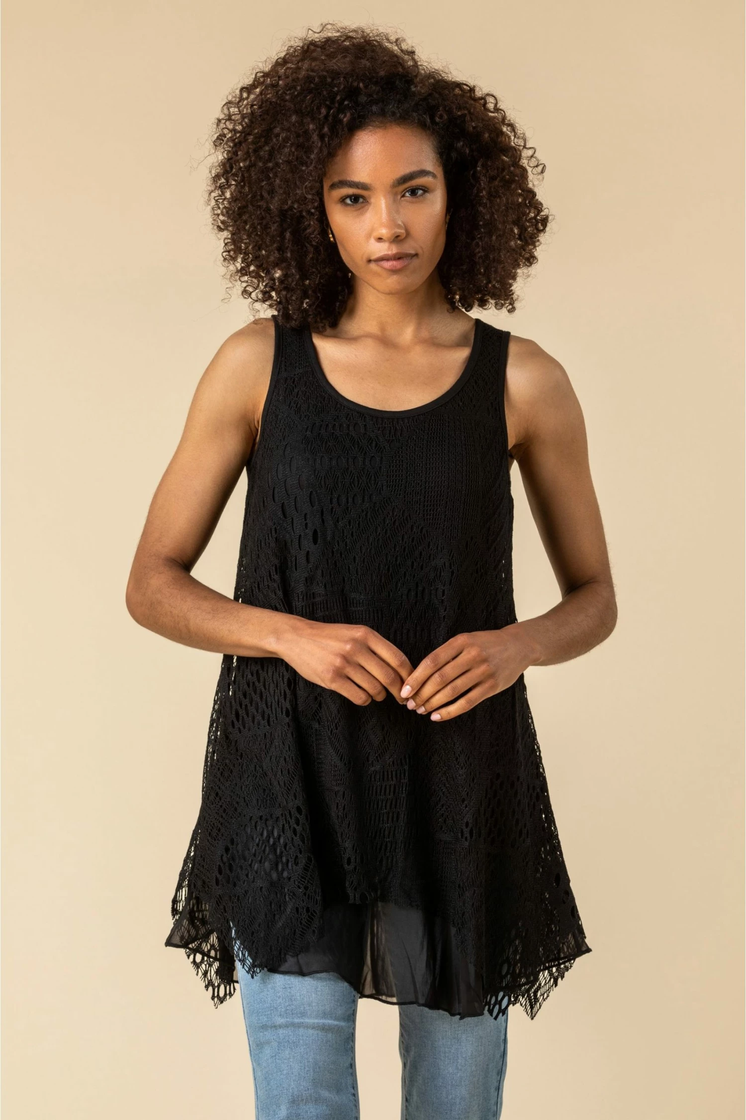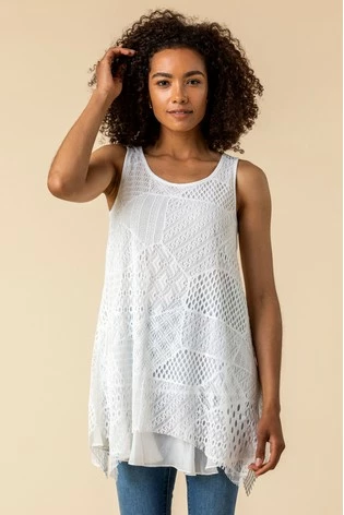A feminine take on the classic camisole, this pretty top is sure to become a Spring-Summer staple. With a delicate lace overlay and a hanky hemline, this pretty vest top looks great paired with pale coloured cropped trousers. Ideal to take with you on holiday, this breezy top can be dressed up and down to suit any occasion.