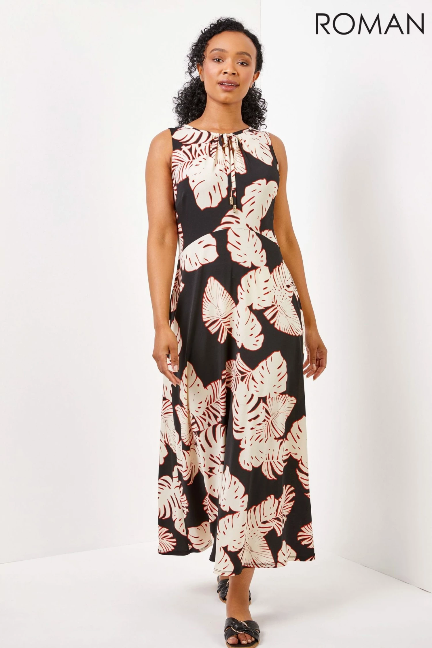 Striking florals and elegant silhouettes, this midi dress is primed for dressing up. Created with a flattering empire line that helps skim the waist and a tie neck detail with a keyhole finish that can be worn open or tied up adding a touch of drama to this eye catching piece. Styled with heels and clutch for a dinner date in the city look, or flats for a day out with the ladies in style!