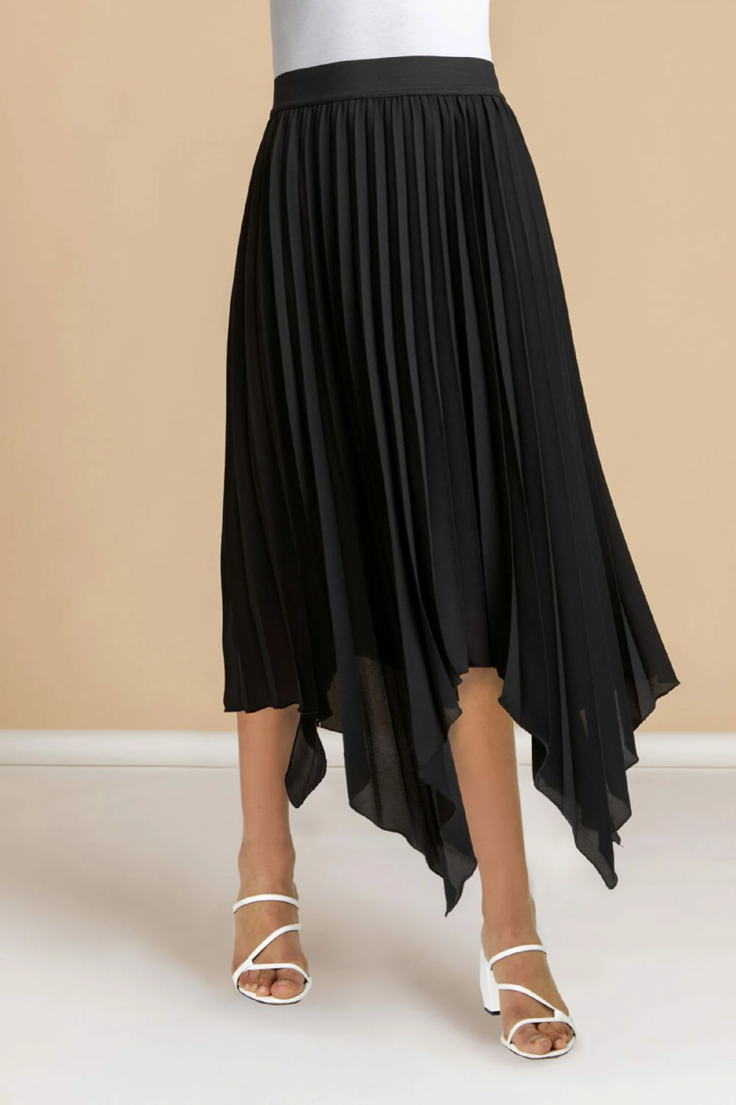 Add a classic flair to your everyday rotation with this versatile midi skirt. Finished with pleating throughout and a Roman favourite hanky hem detail, this calf-length skirt can be dressed up and down for any occasion. Add an elegant blouse and heels for a dinner date or tuck in a tee and team with trainers for a casual weekend look.