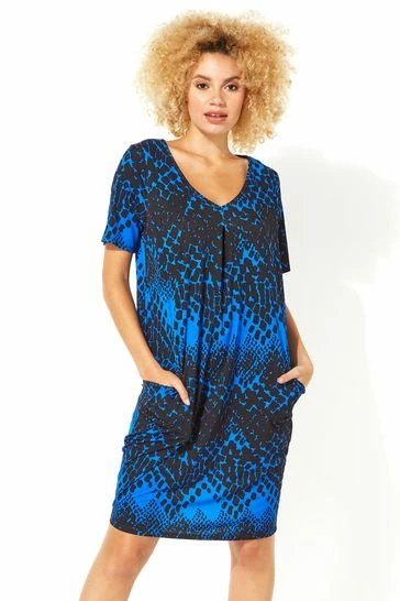 Cut to an oversized fit, this relaxed dress is perfect to dress up or down, whatever the occasion. This style features short sleeves and a flattering v-neckline with a comfortable stretch jersey material making it feel just like a t-shirt. Complete your causal look with sandals and a tote bag for a go-to everyday outfit perfect if you are jetting off to get some winter sun!