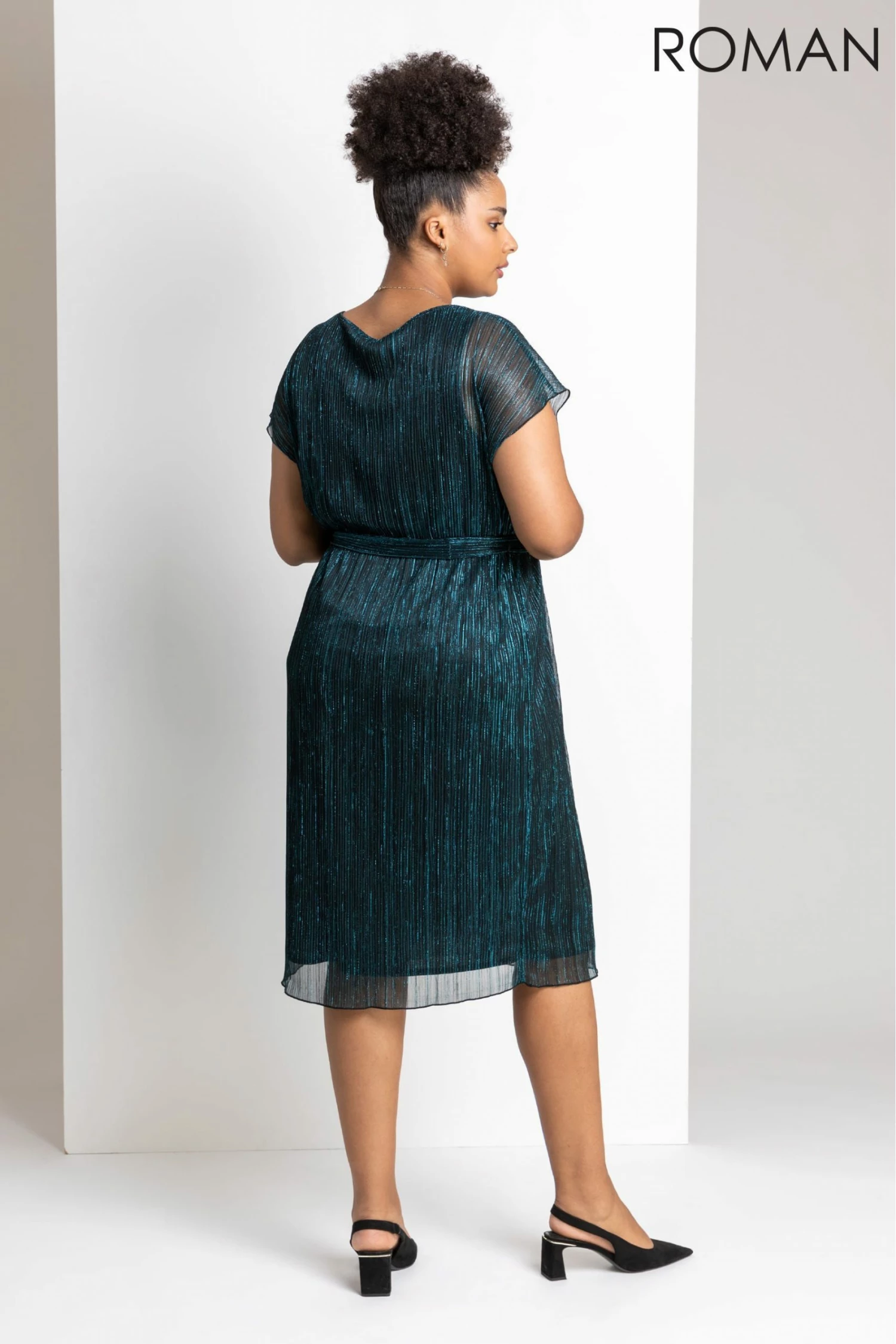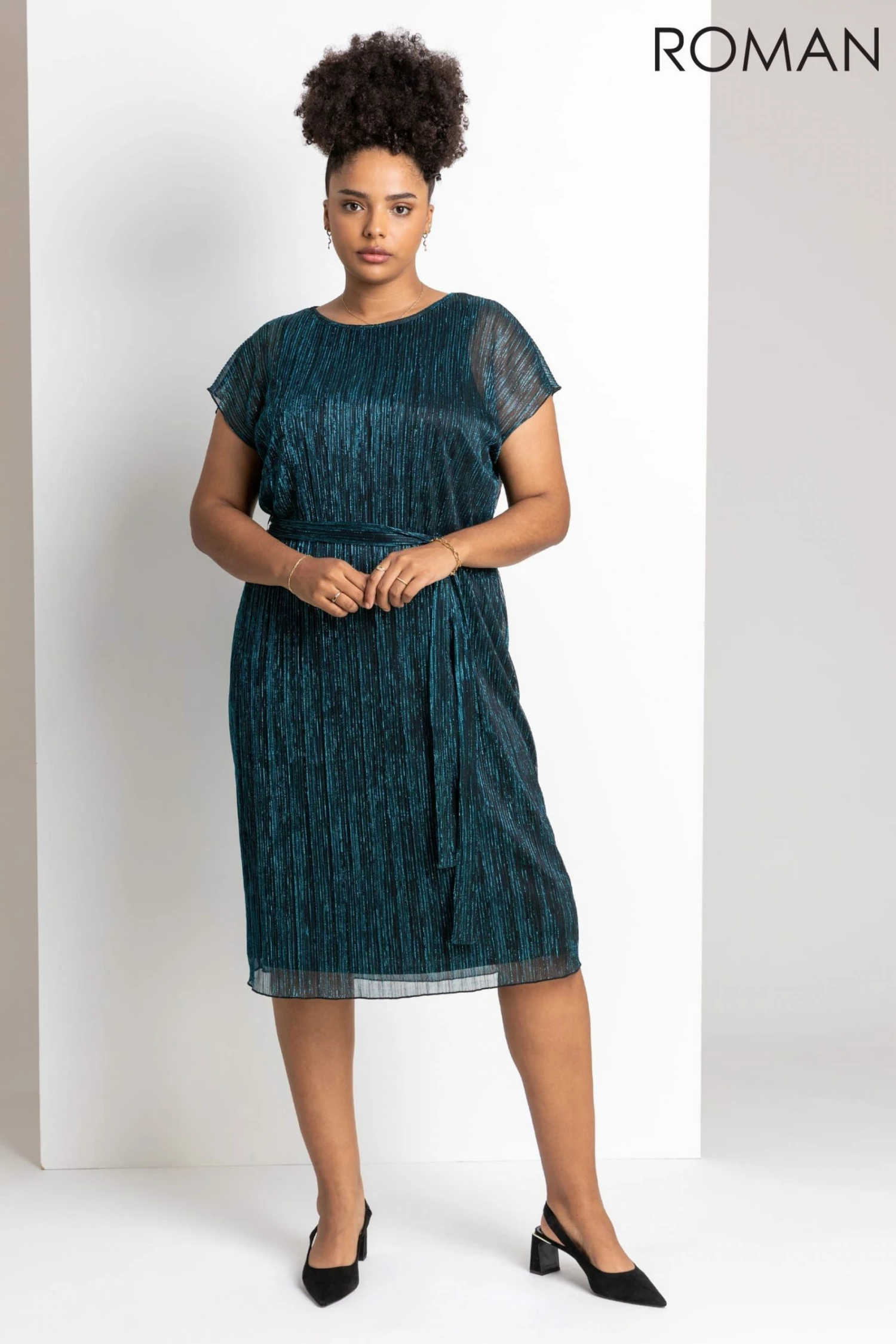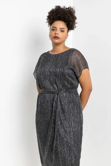 Shimmer and shine in this stylish plisse midi dress. Cut to a glamorous shift shape with a waist cinching belt, our new Curve style is perfect for the party season ahead. This short sleeve plisse dress also has slightly sheer sleeves to give your look some feminine flair. Style with black heels and a little clutch for your Christmas party or layer over our shimmer kimono for the ultimate evening ensemble.