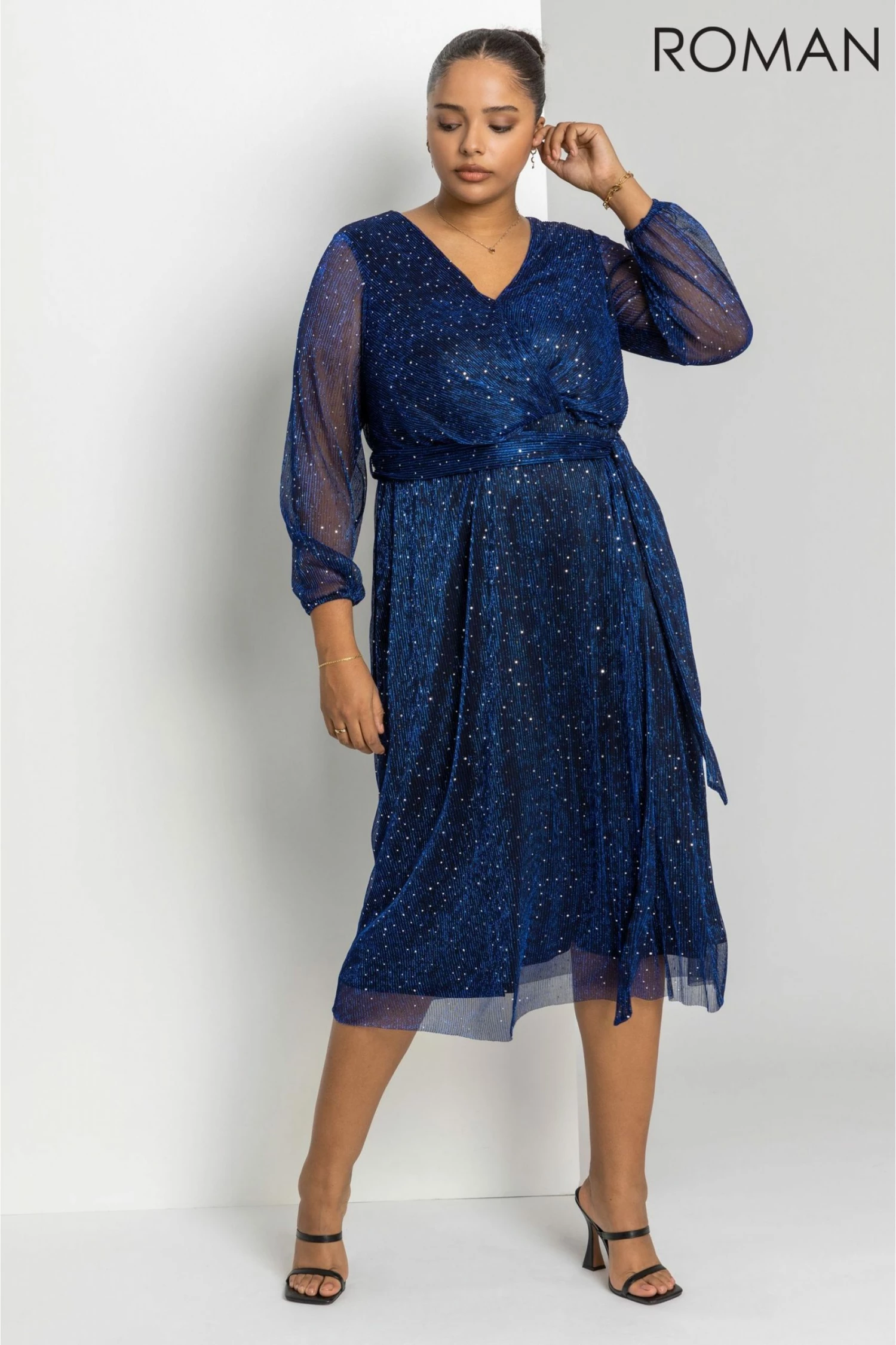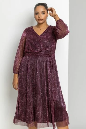 Exclusive to our Roman Curve range; turn heads this festive period in this Pretty in Pink Plisse dress! Cut to a midi length, this fixed wrap dress will cinch you in at the waist with a self fabric belt, and gather detailing. The rich pink colour and shimmer fabric will dazzle on the dance floor. The body is fully lined, and long sleeves ensure plenty of coverage. Add a pair of silver shoes and accessories to really stand out this season!