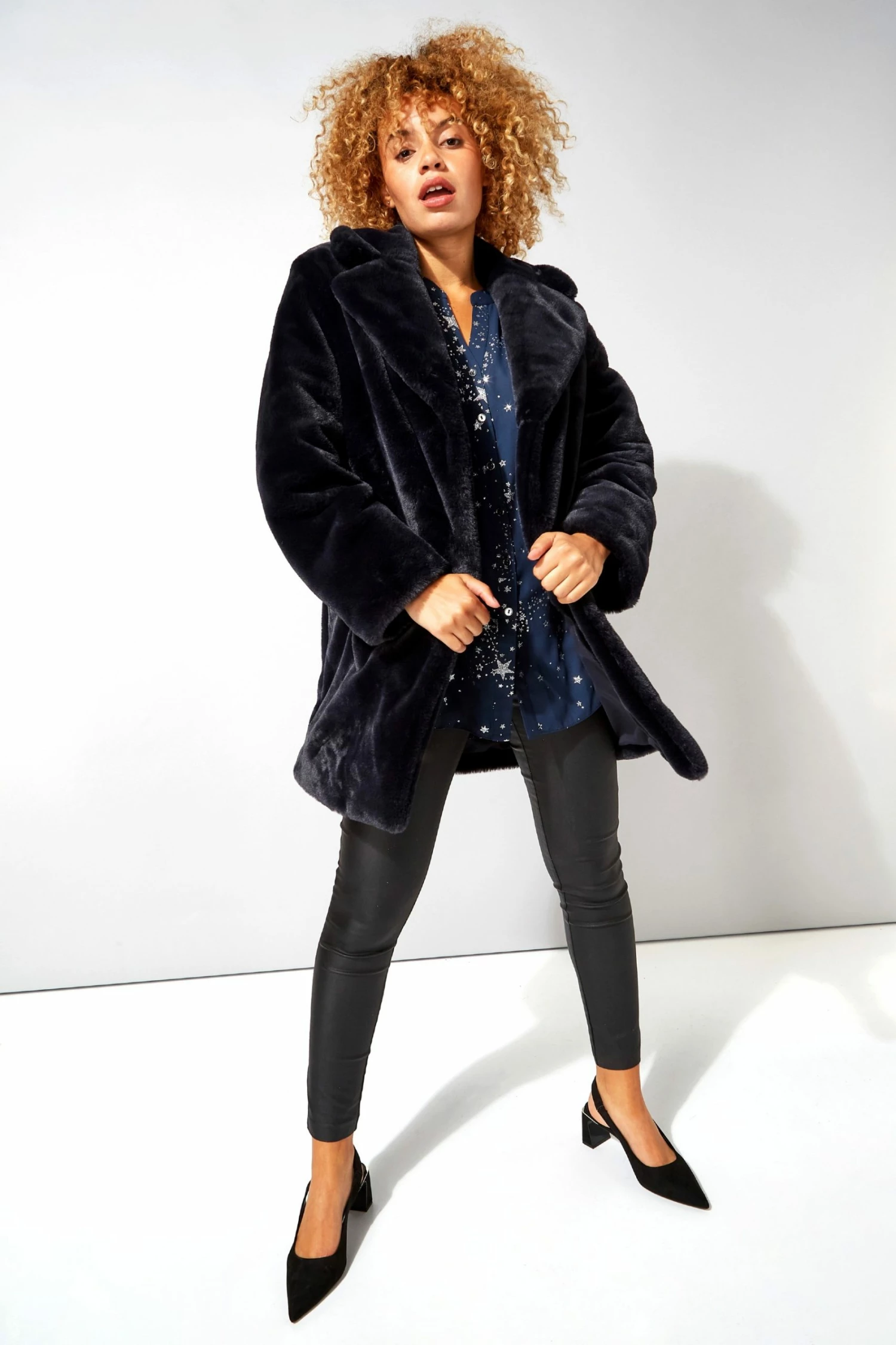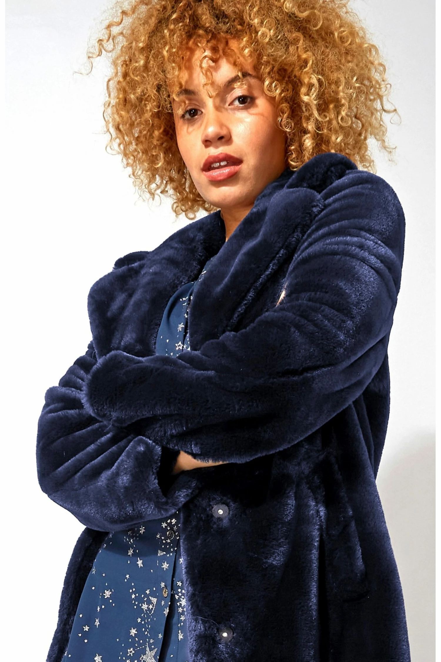Wrap yourself in luxury in this cosy and elegant faux fur coat. Featuring long sleeves and a soft touch, this coat is sure to keep you warm during the cold winter months. Wear with an elegant maxi dress for a special occasion or with smart trousers and chic top for an everyday look.