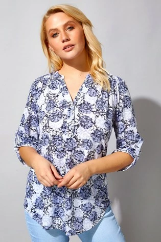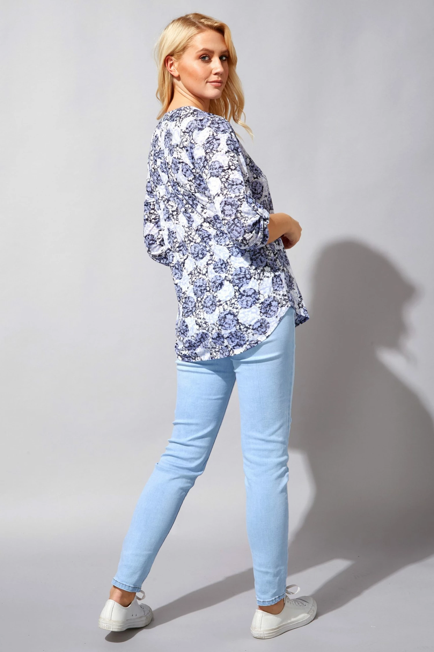 Add a pop of colour to those dreary days with this button down floral top. Adorned in a beautiful burnout print, this lightweight jersey top is perfect for all year round. Whether you are off on a sunny holiday and packing it in your suitcase or staying at home and layering up with a cardigan, this 3/4 sleeve staple is bound to be a favourite!