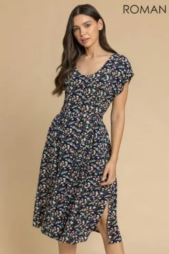 The print which never goes out of style, the timeless floral. Grab yourself this gorgeous printed day dress featuring a v-neckline and feminine side split hem. This floaty fit and flare tea dress is a must-have to add in your suitcase for summer holidays or for dressing up at your next garden party. Finishing with a stetchy shirred waistline to flatter your figure, this dress is what youβve been dreaming of.