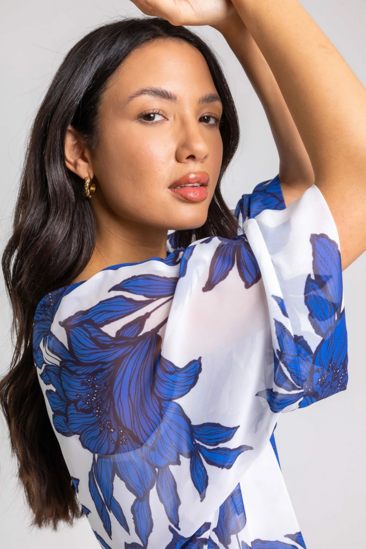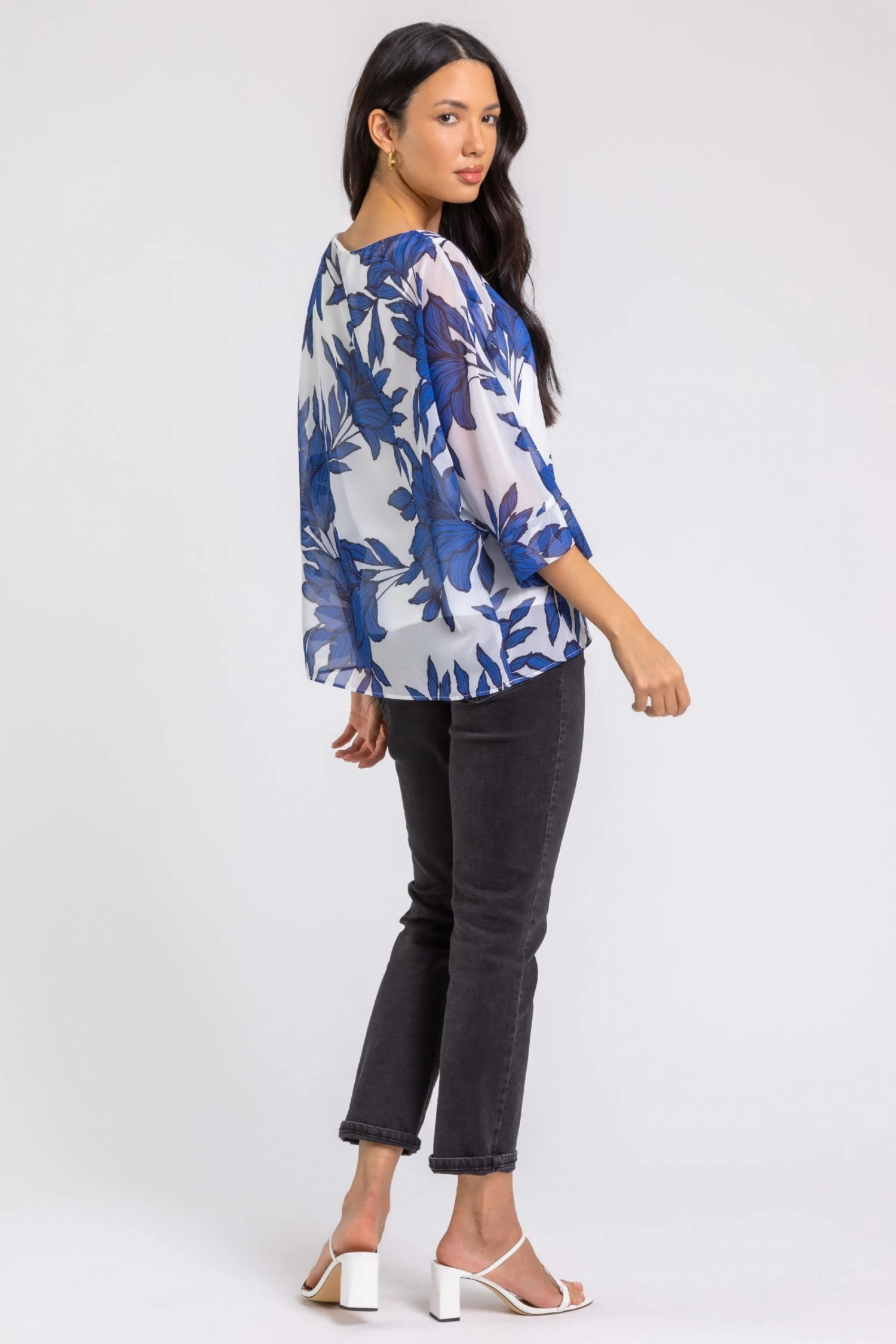 Be bold this season in feminine florals and floaty fits! This chiffon style has a statement green printed overlay with a comfortable jersey lining, finished with 3/4 batwing sleeves. Add this spring piece to jeans and pumps for an everyday look to take you from day to night, add heels for a dressed-up alternative.