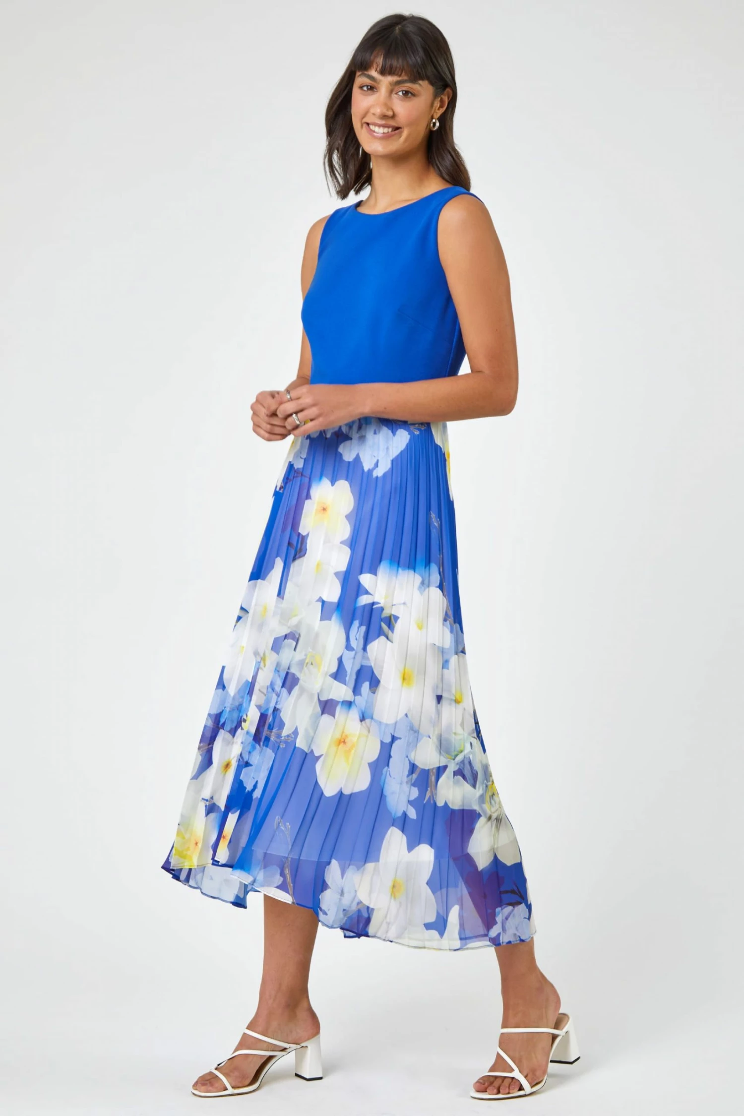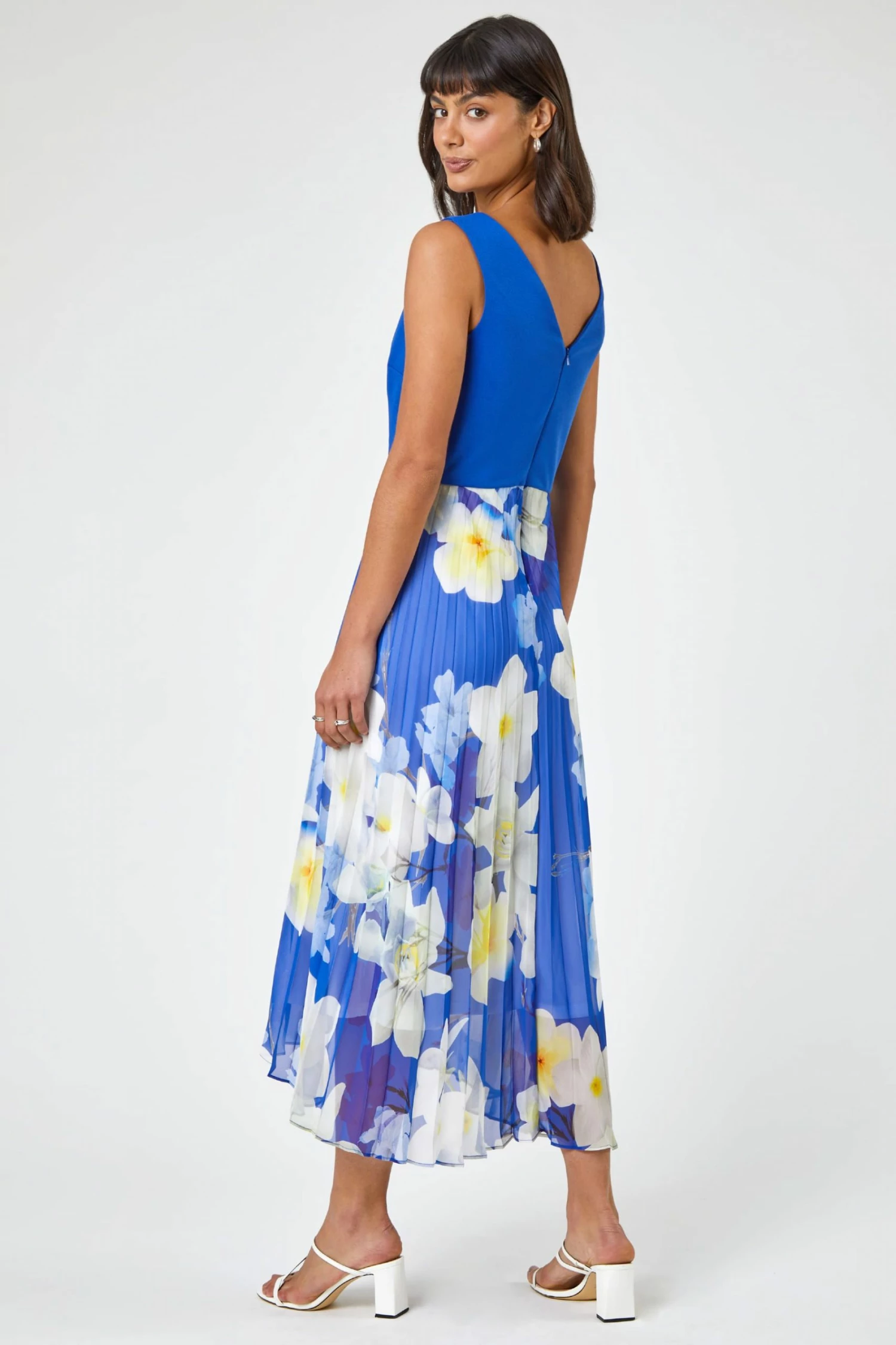 Exude free-flowing elegance at your next formal invite in this fit and flare pleated midi dress. Cut from lightweight fabric in a slim-fitting silhouette, this dress features a scuba bodice and a fluid falling floral print pleated midi skirt perfect for weddings, evening events and smart days out this spring summer. Team with heels, a clutch bag and a fascinator for a stand-out polished look.