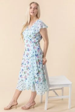Get Dotty About Spots And Florals This Season With Our Summery Printed Wrap Dress. Featuring Wrap Detail To The Front Giving A Classic V-Neckline And Made From A Lightweight Material, This Dress Finishes Nicely At Knee-Length With A Concealed Zip To The Back. Add Some Sophistication To Your Everyday Workwear Style With Smart Shoes And A Cardigan Or Dress It Up With Heels, A Clutch And A Matching Fascinator For A Special Occasion This Summer.