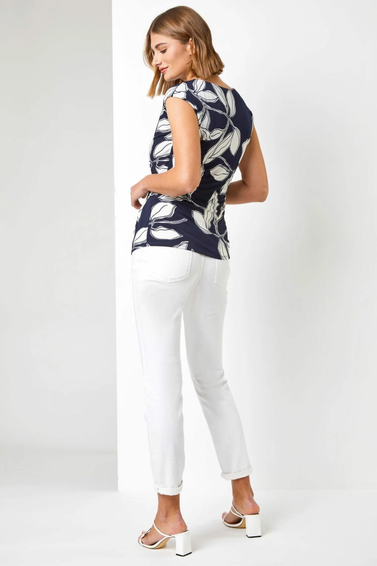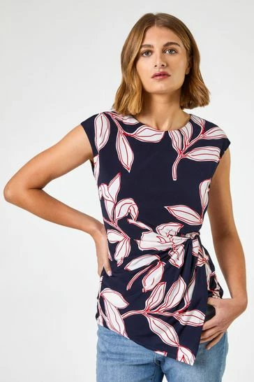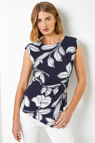 An everyday staple for your work to weekend wardrobe, our new Roman top is the perfect all-rounder. The slinky jersey top has a flattering cross front shape with a knot detail that creates a subtle asymmetric hemline. This contrast style is finished with cap sleeves and a striking floral print to add feminine flair to your outfit. Pair with a blazer jacket and smart trousers for the office, or layer over white crops to take your look into the summer!