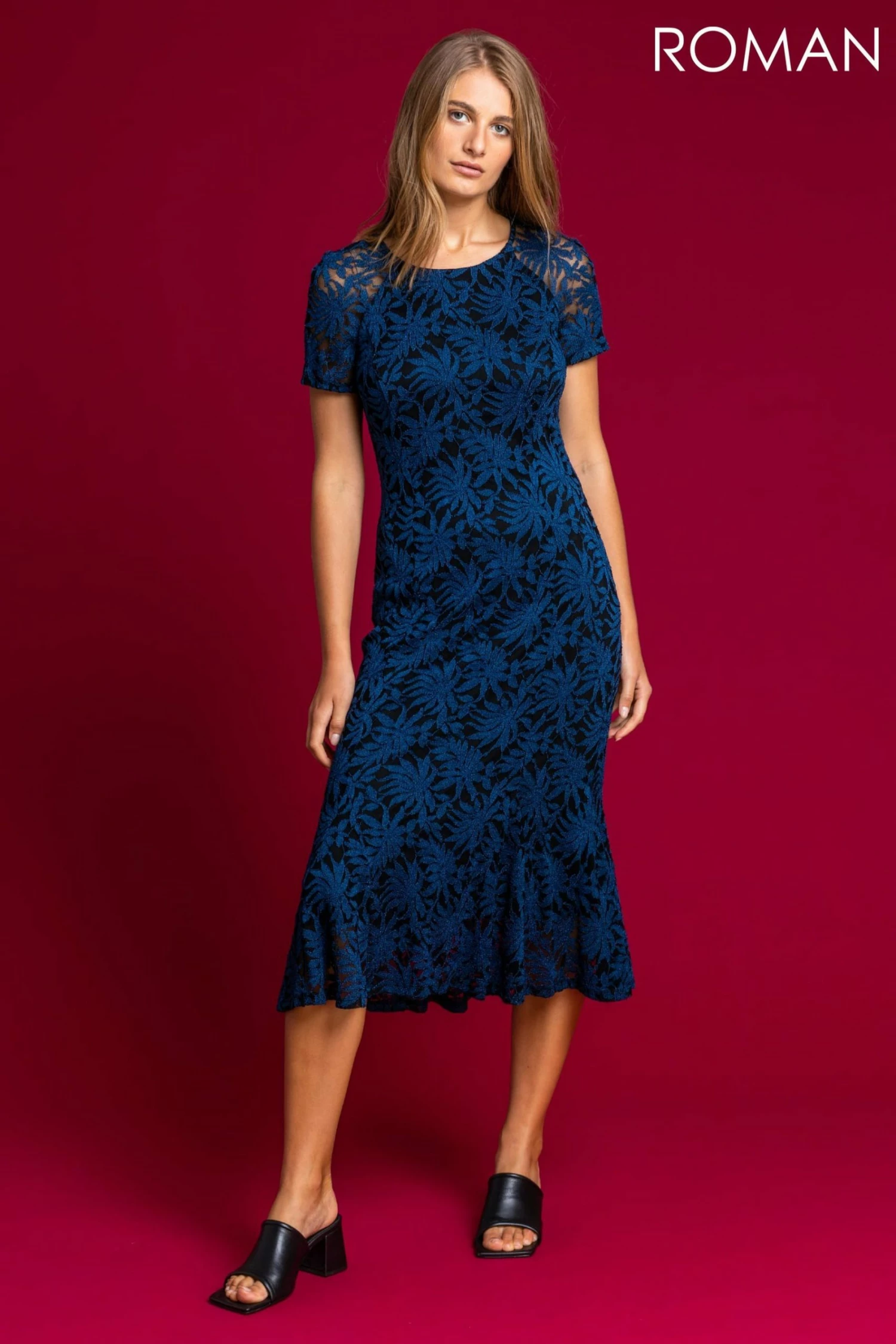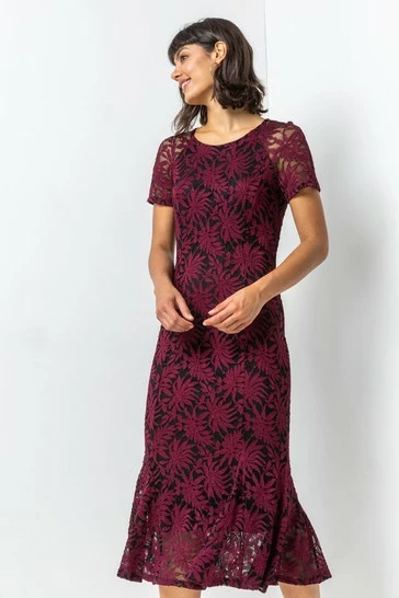 Add some flair to your occasion wardrobe with this palm lace dress. Cut in a flattering fit and flare, this stunning dress is fully lined with a back zip fastening and features a round neckline. Falling to mid-length, this dress is perfect for all your upcoming autumnul occasions, including weddings, christenings and parties. Finish this look by slipping on some heels and for an extra fancy look, add a colour complimenting clutch!