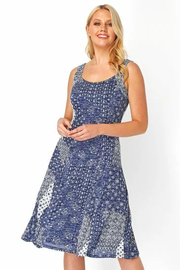 This classic jersey dress will have you flourishing in femininity this season. Featuring a pretty patchwork print and a flattering shape, this piece will make a great addition to your day wear collection.