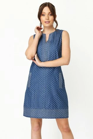 Give your jeans a break with this gorgeous denim shift dress. Featuring a comfy soft design, white stitch detail and a v-neckline, this so-simple dress is perfect for an easy weekday-to-weekend look.