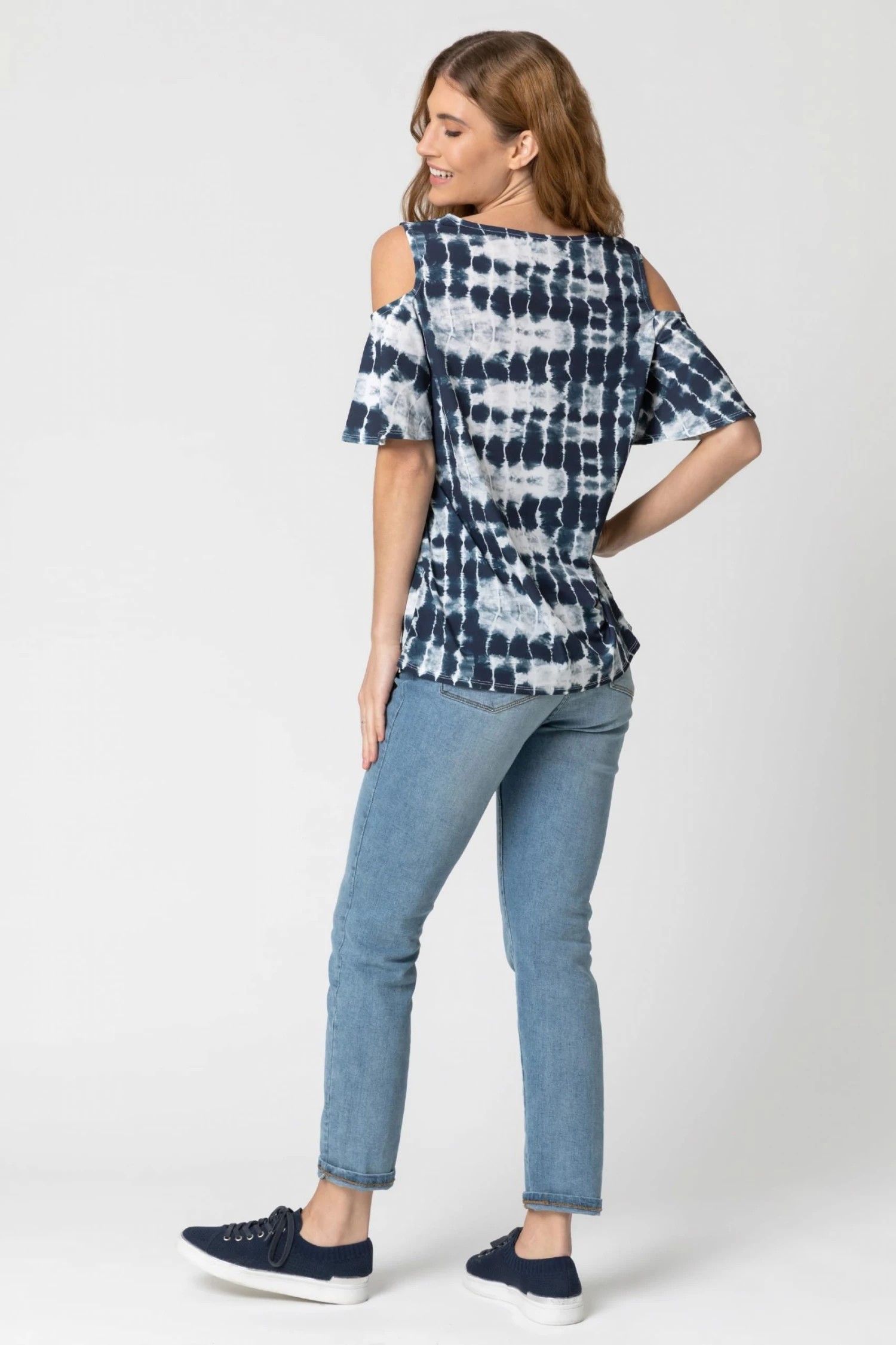 Stand out this season and show off some styles with boho-chic prints and lightweight fabrics. Cut to a relaxed loose fit, this all-over tie-dye print top features a v-neckline with cold-shoulder short sleeves. Pair this easy-to-wear style with your favourite denims and sandals for a summer look to take you from sofa to sun!