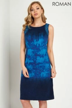 This statement tie dye shift dress is made from lightweight cotton which makes it the perfect way to combine comfort and style. Featuring ombre hues of light blues and dark blues, keyhole detailing at the back of the neck and pretty floral embroidery at the shoulders, this statement dress is a must-have style that’s easy to dress up or down. It definitely deserves a place in your suitcase this Summer.