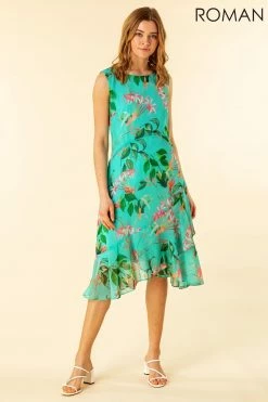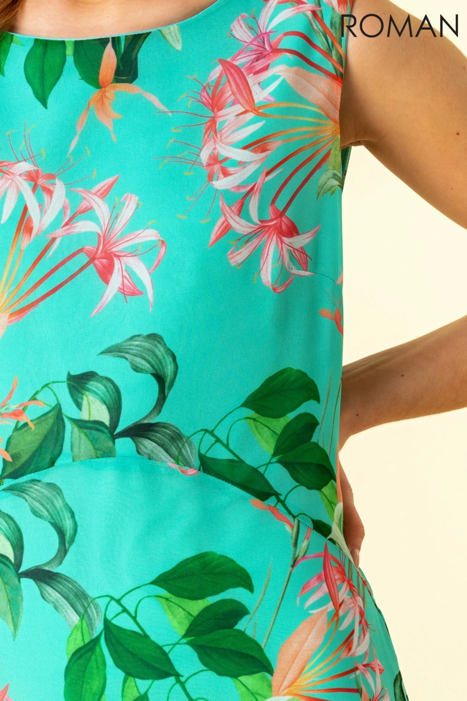 Feeling like a holiday? Get tropical this spring/summer with our pretty printed dress, perfect for this season. Featuring an all-over paradise print and round neck, this lightweight chiffon summer dress is fastened with a zip to the back and has a beautiful fluted hem that will take you to the tropics. Pair with summer sandals and a lightweight cardi for a daytime everyday look or dress up with heeled sandals and a clutch taking you from the beach to the bar.