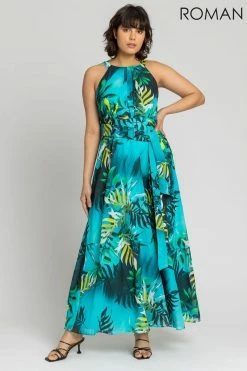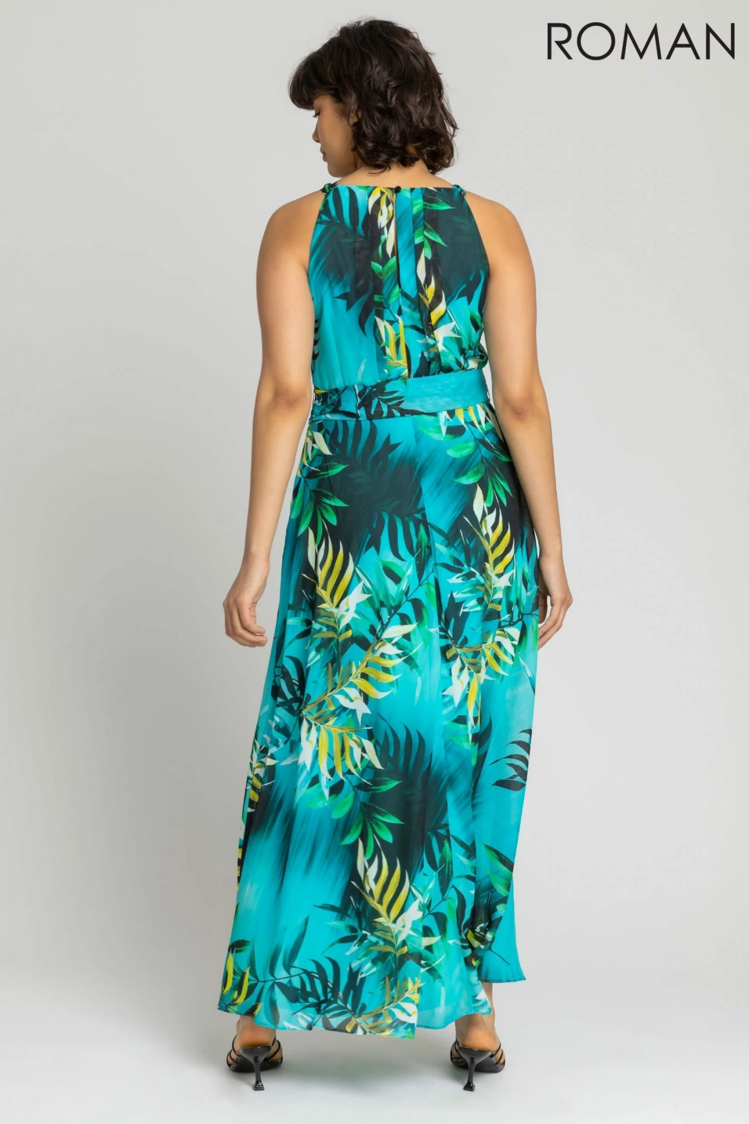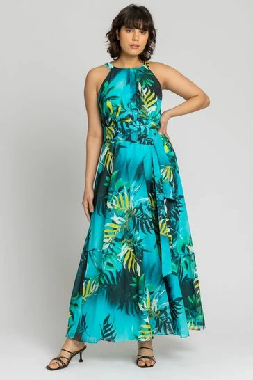 Maximise your seasonal style with this halter neck maxi dress. A sleeveless style made in a soft fabric with a stunning leaf print, this vibrant tropical dress is the perfect attire for holiday strolls and summer events.
