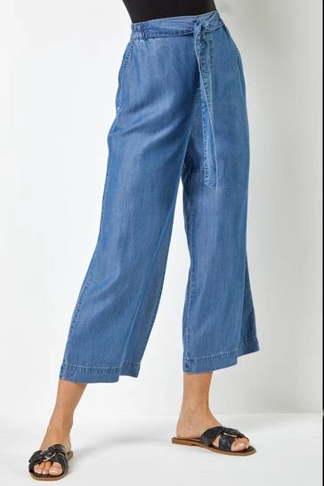 Casual culottes are the new best thing! These lightweight trousers will become part of your everyday wardrobe before you know it! Featuring front pockets, this pair of trousers have an elasticated waist with an additional waist tie on the front. With a pull on style like this, pair with a statement tee to get an everyday casual look yet refreshed on trend look.