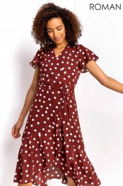 Get spotted in this chic polka dot print wrap dress, featuring a v neckline with an oh so flattering frilled hem and tie belt to highlight your waist adding a soft modern touch. With this versatile dress, it can we dressed up or dressed down, from desk to dinner your options are endless!
