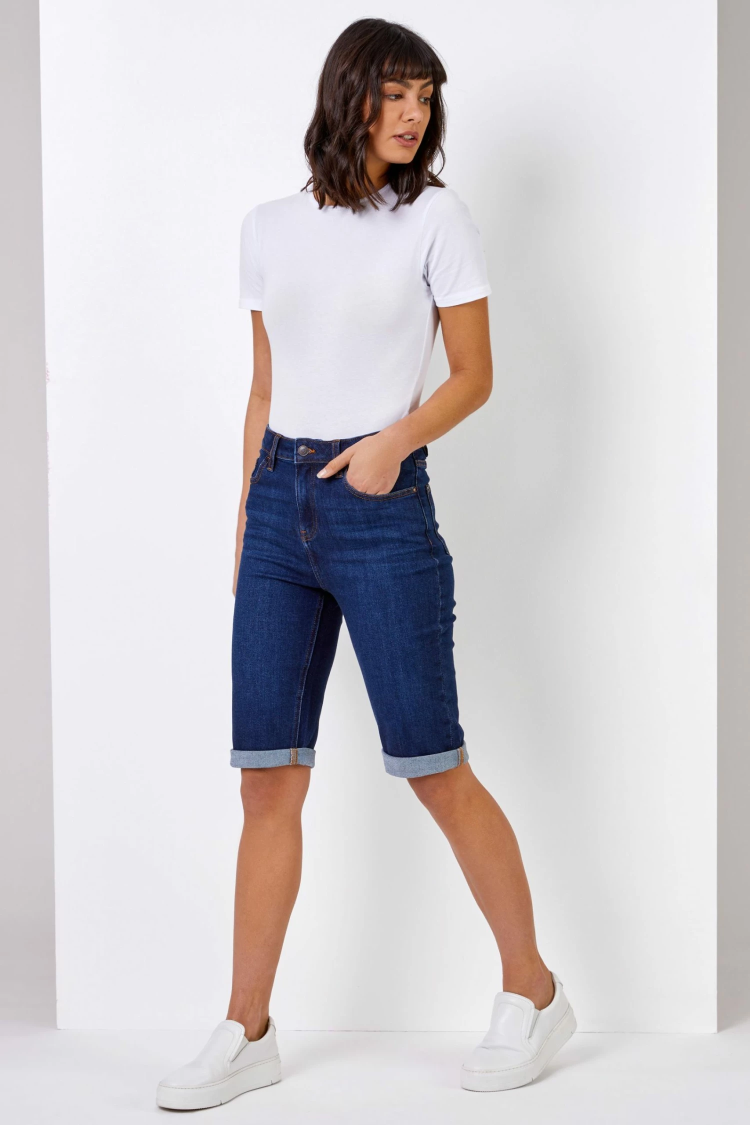 Give your summer wardrobe a revamp with our new and improved knee length shorts. An essential for any ladies wardrobe, these long length shorts have a comfortable stretch and a turned up hem for those warmer days. Secured to the front with a button and fly fastening, these summer favourites are finished with pocket detail to front and back. Make sure to pack yours in your holiday suitcase, team with your favourite printed or plain tees and sandals for a warm weather look.