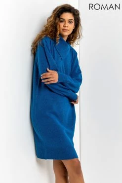 Update your casualwear collection with a comfortable wardrobe staple that will keep you cosy this season. Featuring a split detail to the neck, this chunky knit jumper dress has a classic rib detail to cuffs, collar and hem. Cut to a relaxed shape giving you a loose comfy fit, this dress is finished with a split detail to the rolled neckline. Pair with thick tights and chunky boots for an autumn-winter warmer style.