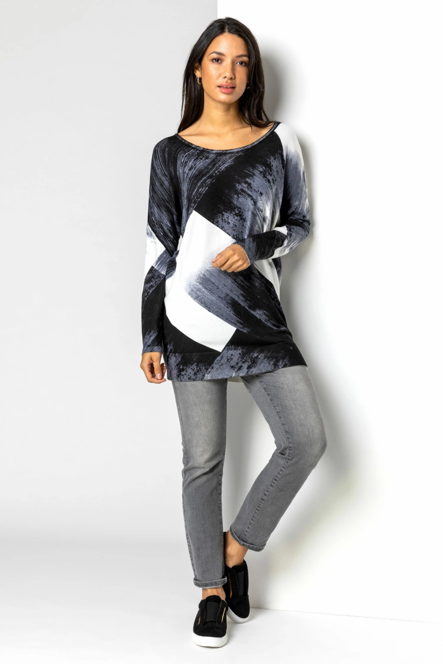 Step into Autumn in style with the addition of a new printed top. Perfect for layering up on a cold winter s day with boots and a coat, this chic blouson style is both comfy and flattering on the figure. Complete with full length sleeves and round neckline, this jersey top is adorned in a colour block print with textured snit knit panels.