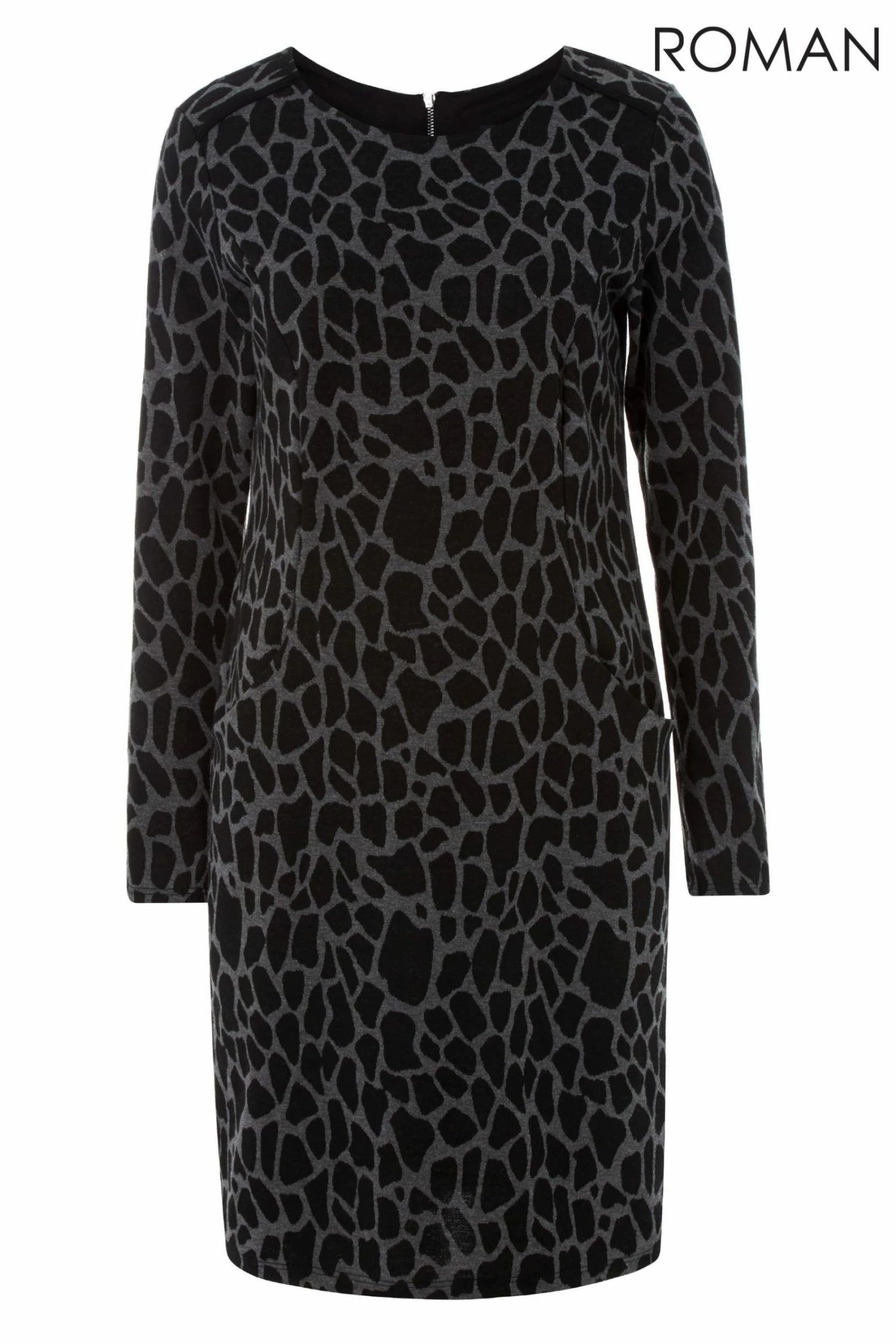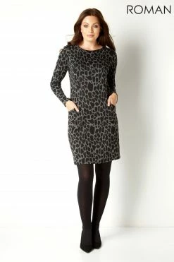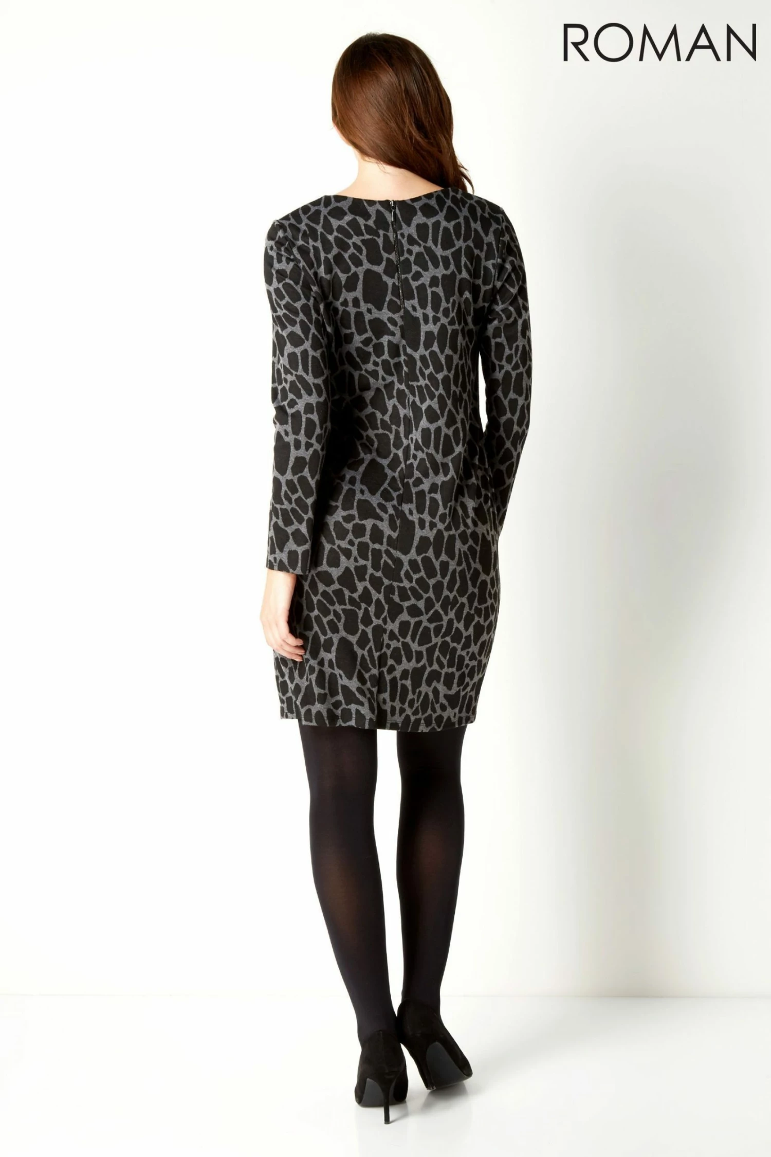 Go wild for this leopard print dress. Featuring long sleeves and side pockets, this comfortable knee length dress was made for both work and play. Team with tights and heels for a smart outfit.