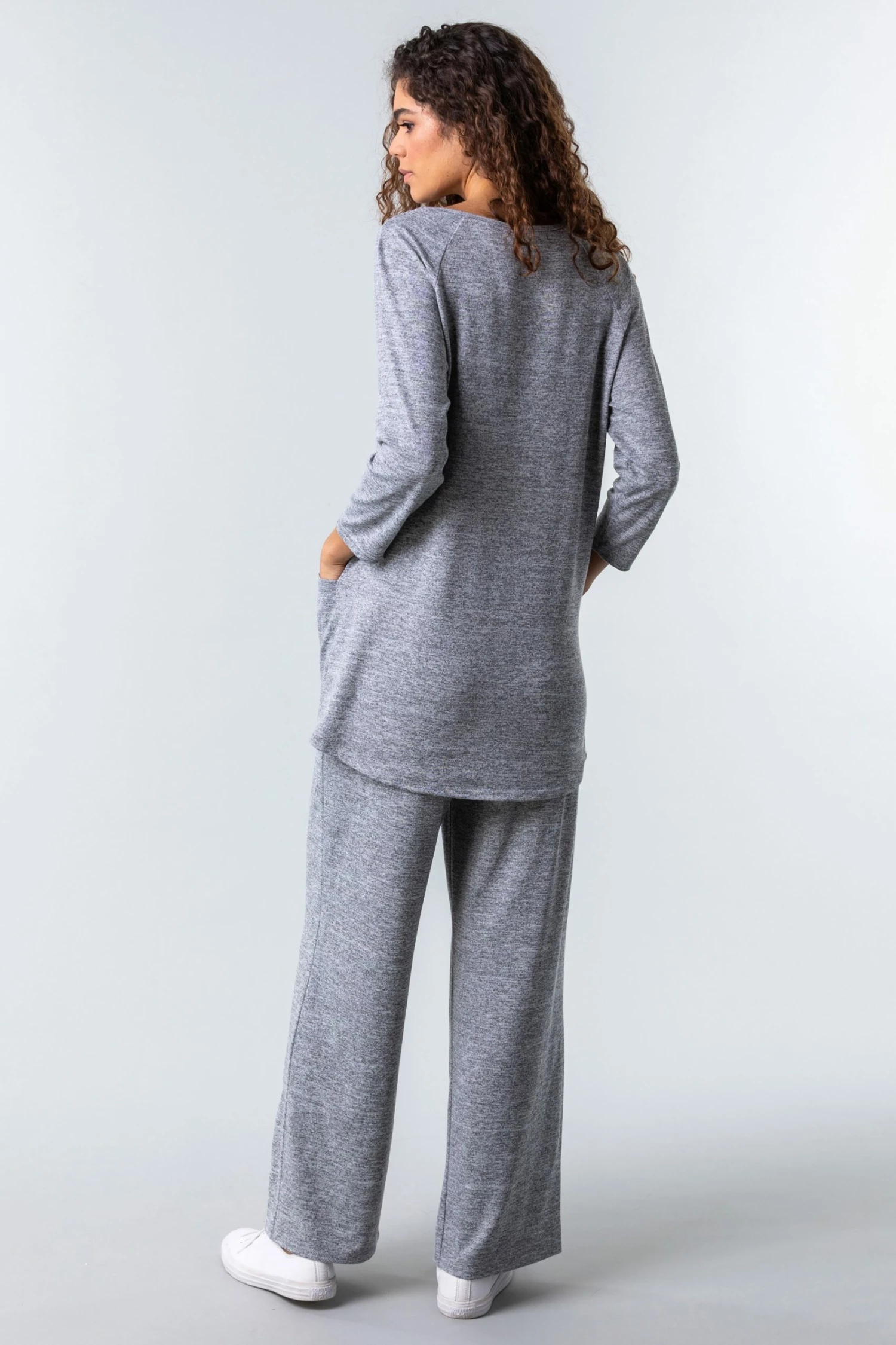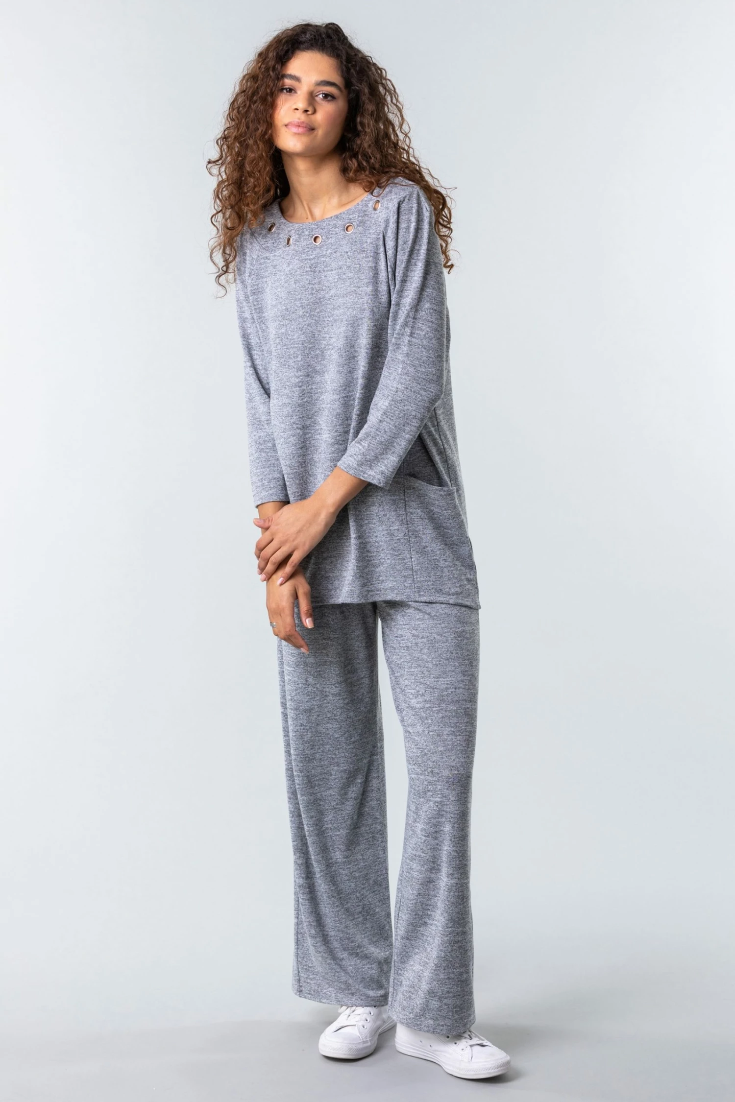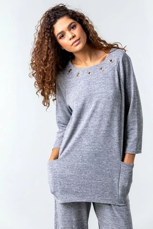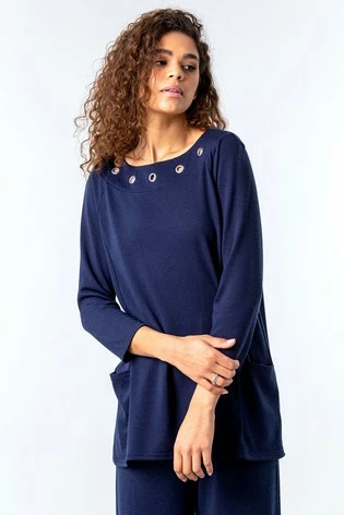 Stay comfy yet stylish with our detailed lounge tunic top. Featuring eyelet detail to its crew neckline, this lounge top has been cut to a relaxed shape and has 3/4 length sleeves for a comfortable fit. With additional pocket details to the front, you won’t have to worry about space for your essentials. Perfect for chilling out and relaxing, mix and match with the rest of our loungewear range and create a stylish look that will take you from dawn till dusk.