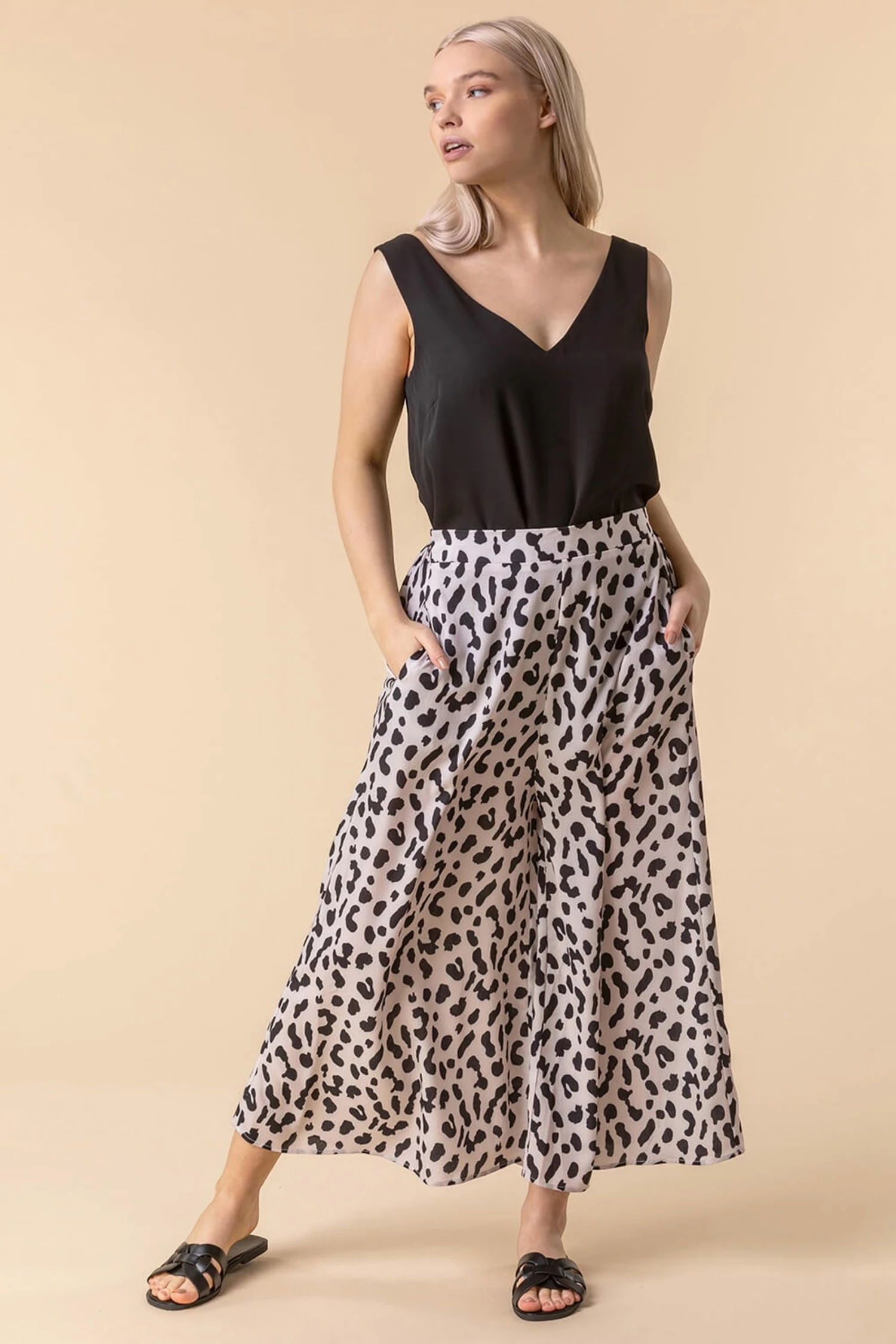 Take A Walk On The Wild Side With Our Bold Animal Print Culottes, Perfect For Stylish And Fun-Loving Ladies. Chic And Comfortable, These Wide-Leg Trousers Are Crafted From A Textured Lightweight Fabric With A Slight Stretch And Feature An Elasticated Waistband At The Rear. Match Your New Pocketed Cropped Trousers With A Plain Tee And Sandals And Switch To Wedges To Take Your Look To Higher Heights.