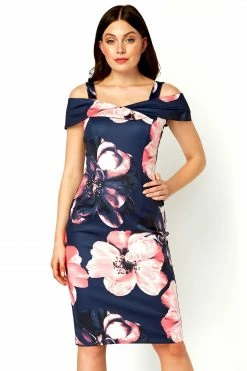 Carve a beautiful feminine silhouette for special occasions with this cold shoulder dress. Adorned in a pretty floral print, trimmed with a sweeping bardot neckline and fashioned from a smooth, scuba fabric, this gorgeous dress finishes a demure knee length and can be styled with high heels and bag to complete your look.