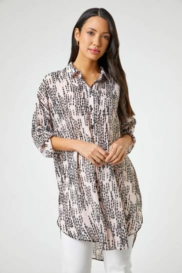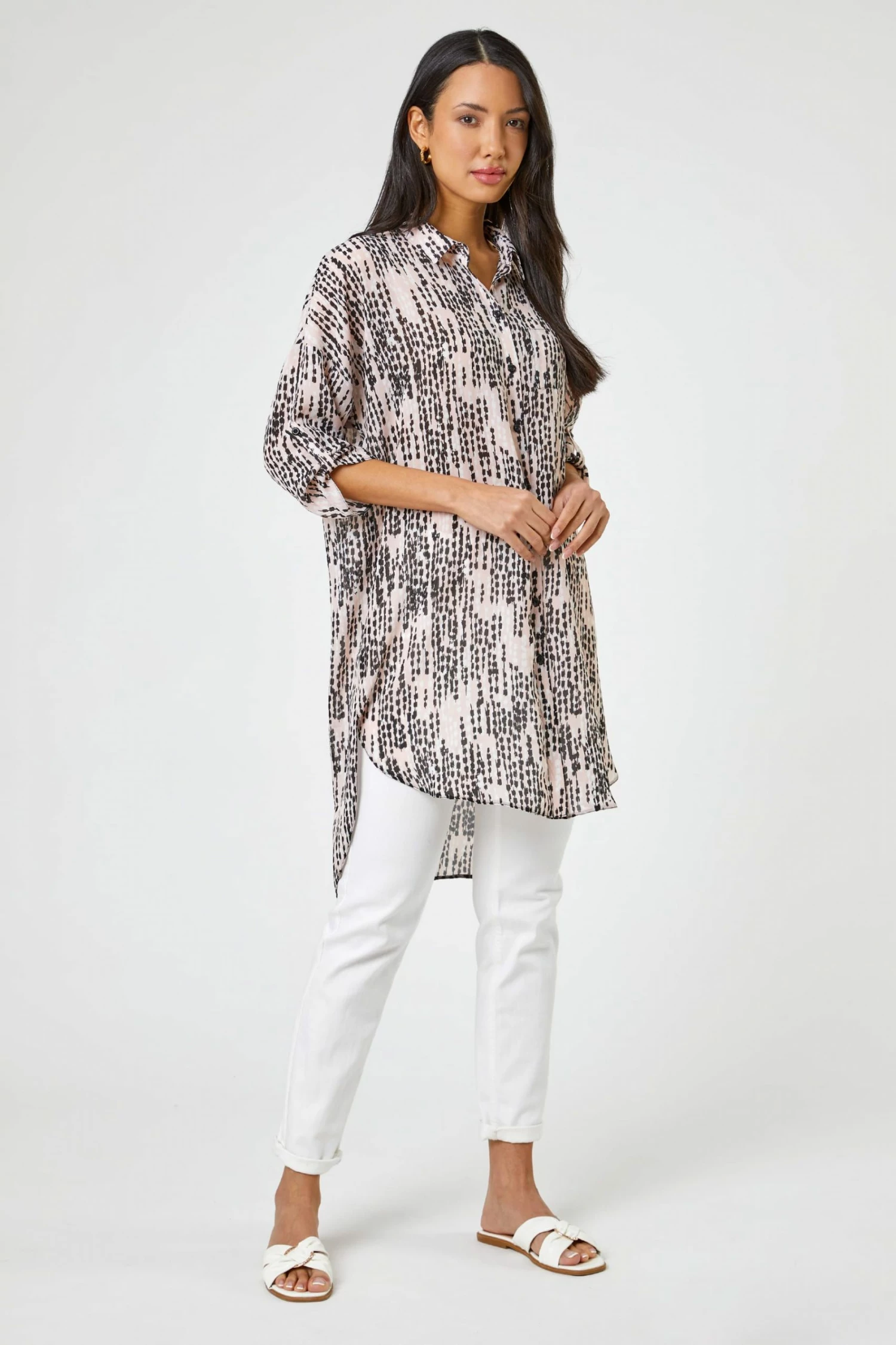 A sure war to inject some colour and print into your wardrobe this season with this abstract print button down longline blouse. Featuring a shirt collar neckline with 3/4 length sleeves, front pocket detail that is finished off with a hi-low hemline. This relaxed style is a sure winner styled with crops or jeggings, flats or heels, this blouse is sure to take you anywhere and any place you need to go!