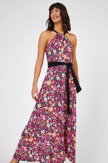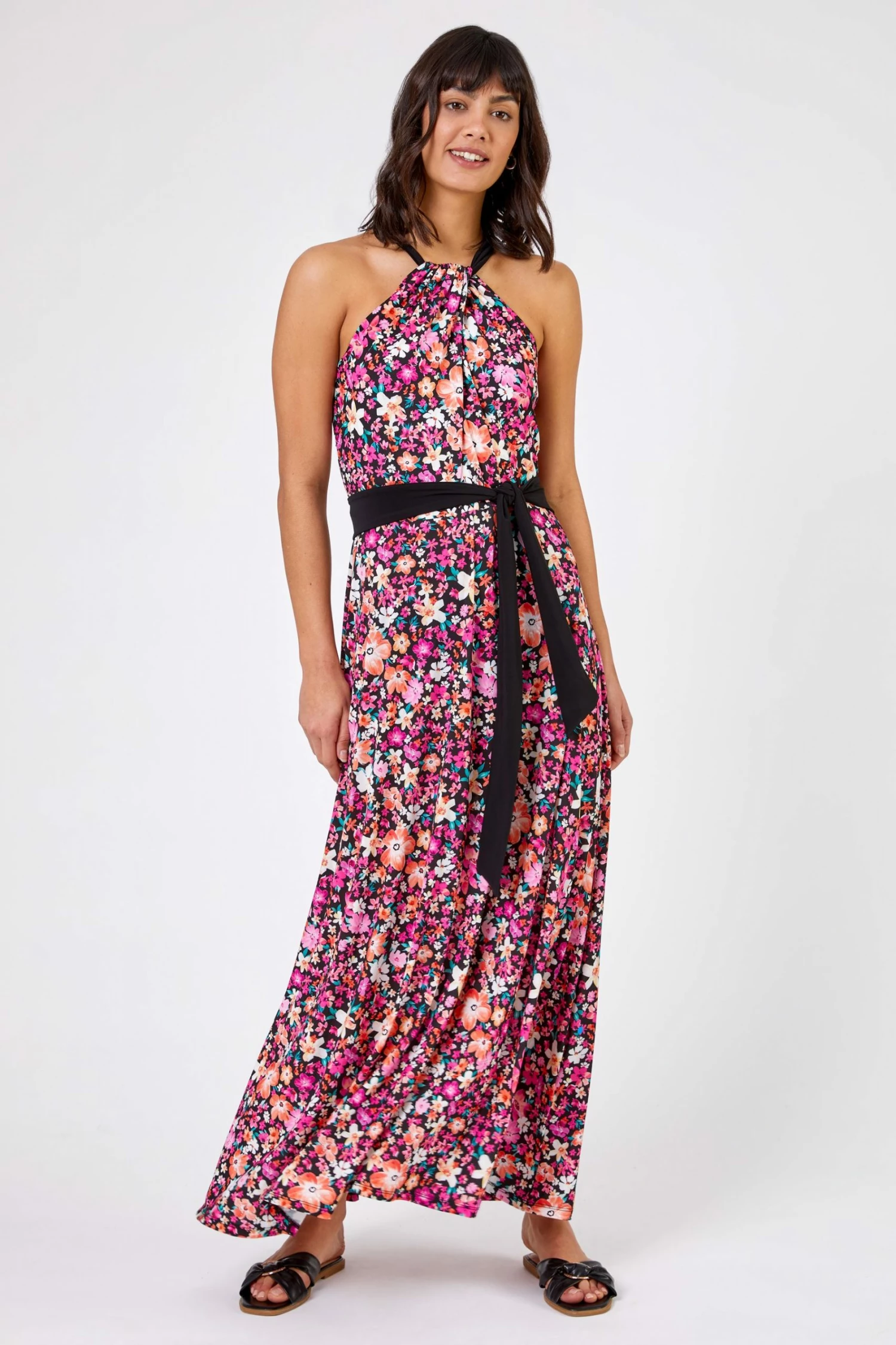 Ditsy florals are a must-have in your spring summer wardrobe so why not add some more! Cut from a stretch jersey fabric, this tie neck piece has a matching belt to the waist and keyhole twist to the bodice. This maxi length number is perfect for dressing up or down to suit your occasion, add sandals and a light jacket to keep your style casual or alternatively add heels and a clutch to add some flare to your occasionwear.