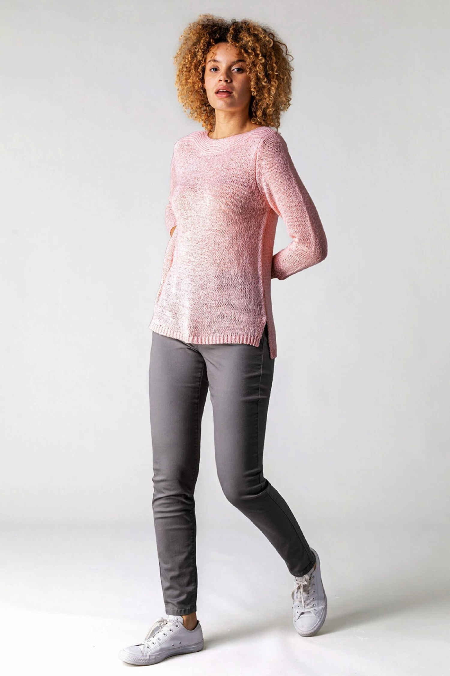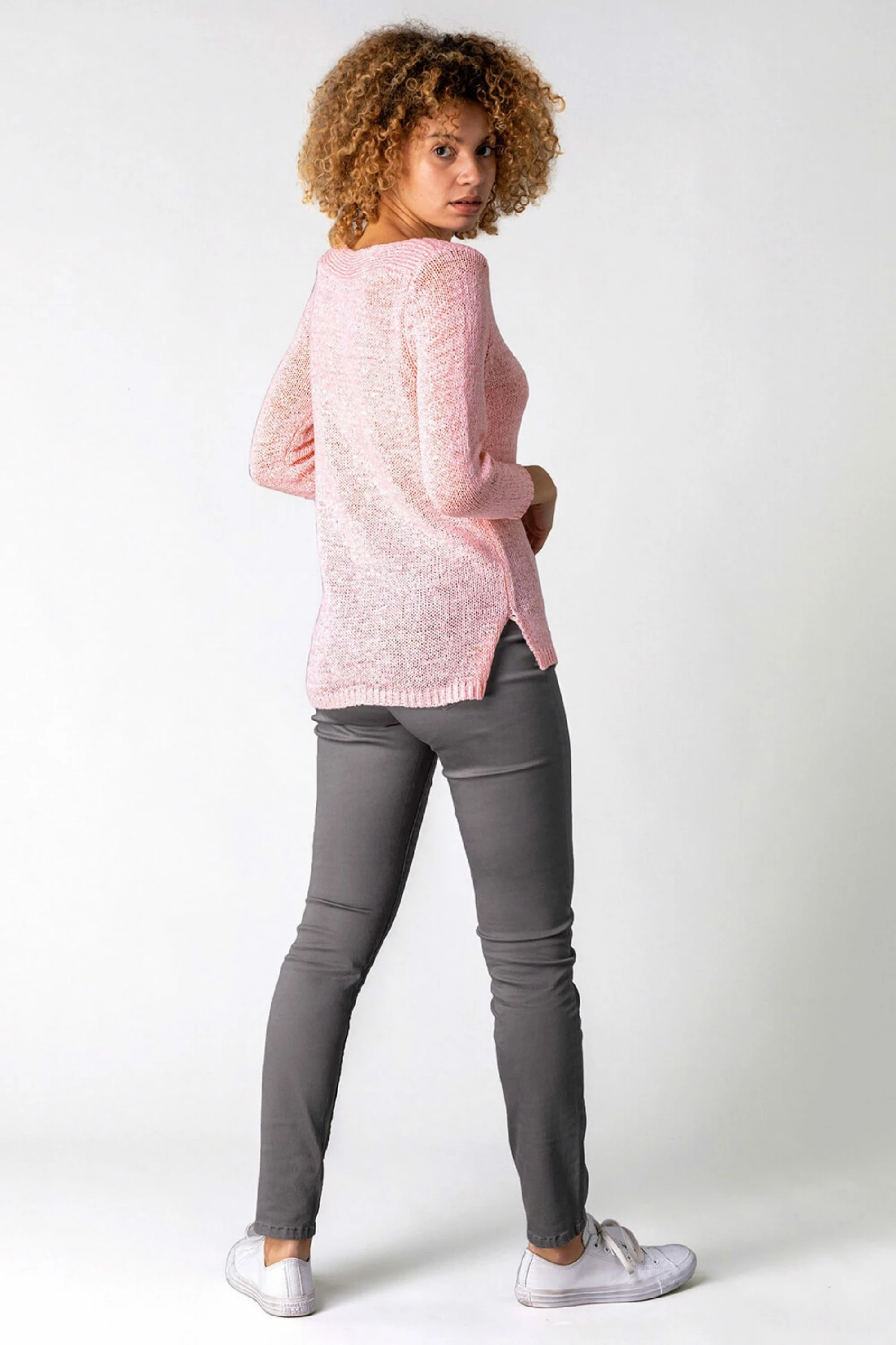 Lending your knitwear collection an unexpectedly modern touch, this jumper features a feminine boat neck with detailed stitching and finished with 3/4 length sleeves. Designed for a comfortable fit, style with denim jeans for a subtle day look.