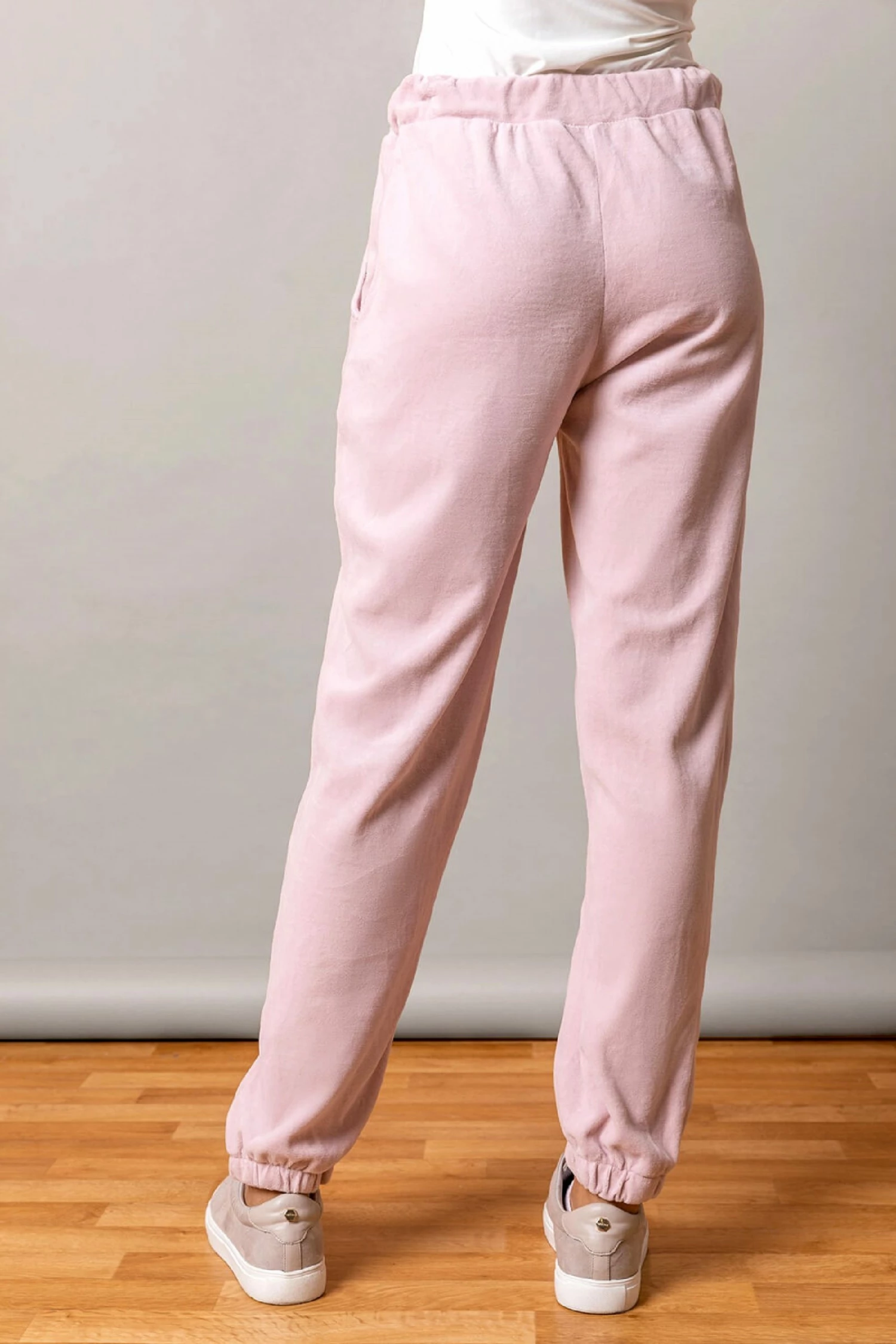 Crafted from a soft material that is perfect for the colder months, these joggers will effortlessly take you from lounging at home to running errands in style. Great for laidback rainy days or snuggled on the sofa in the evening, our new loungewear staple are these soft velour jogging bottoms. Casual cool, these trousers have a comfy cuffed bottom, an elasticated waist and rope drawcord as well as functional side pockets. Complete the look with the matching hoodie for a chilled weekend look.