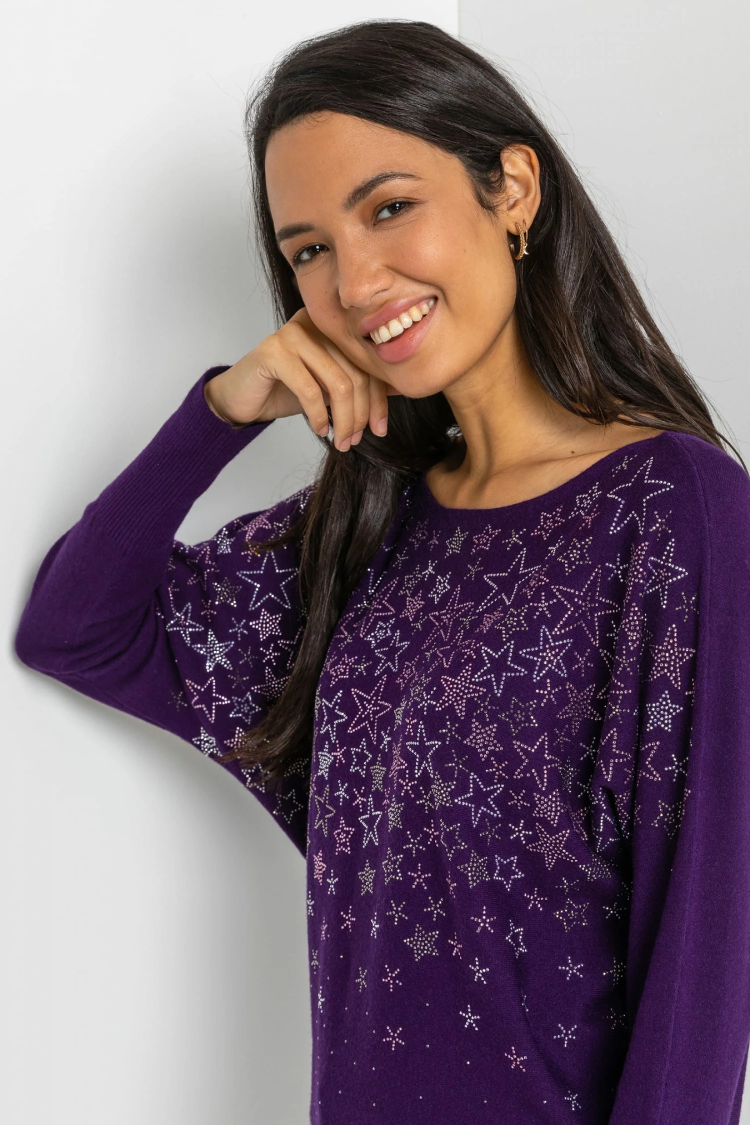 This gorgeous star print jumper is perfect for the season ahead and will make sure youβre cosy and stylish whether youβre chilling at home or catching up with friends. Emblazoned with hotfix star embellishment, this long sleeve jumper adds a subtle sparkle to any outfit and is made from a soft touch fabric complete with a round neckline. Team with denim jeggings for an everyday look that s sure to impress.
