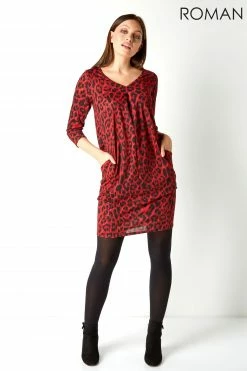 The simplicity of this slouch dress is what makes it so fabulous. Just throw it on and instantly ooze style and sophistication. Adorned in an on-trend leopard print, this dress features side pockets and 3/4 length sleeves. Team with boots for a casual Autumnal look.
