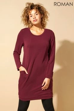 Comfort meets style in this trendy oversized cocoon dress. Made for casual laid back days, this dress is made in a soft stretch jersey with crossover detailing, two functional front pockets and full length sleeves. A great dress for all ages, team with boots and chunky tights for an office ready ensemble or swap for heels and accessories to create a stunning day to evening look.