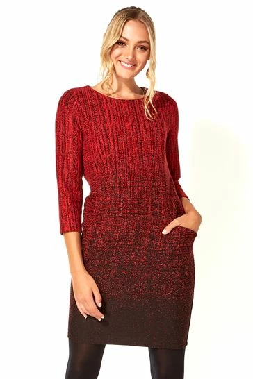 Cut to a relaxed shift style, this dress features a textured ombre print with side pocket detail and finished with 3/4 length sleeves. Style with black tights and boots for the perfect look.