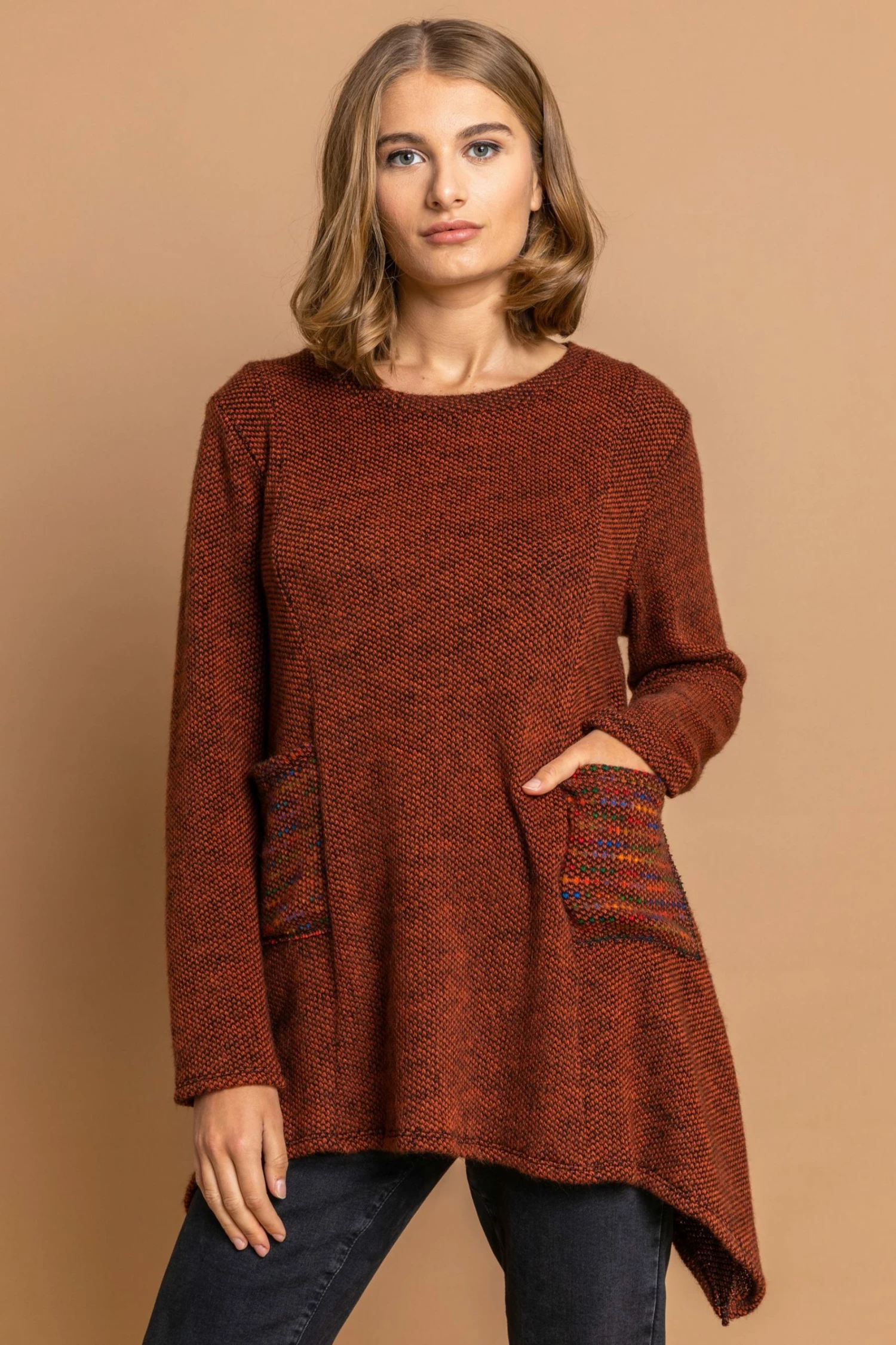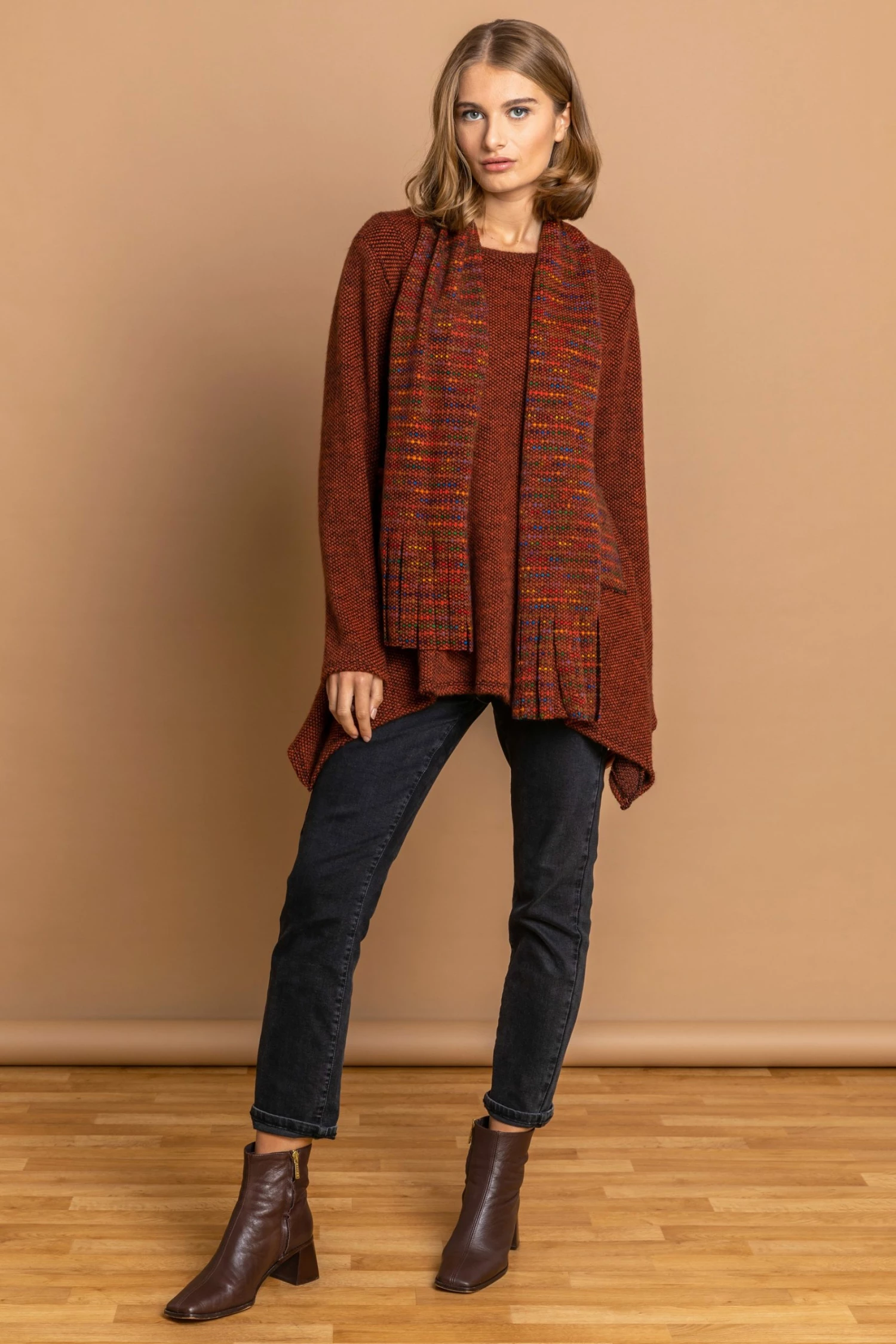 Leap into the autumn with this beautiful tunic and scarf. Made in a sumptuous space yarn fabric, this cosy layer features front pocket detailing and a detachable scarf. Team this long sleeve style with jeans and boots to see you through the autumn-winter.