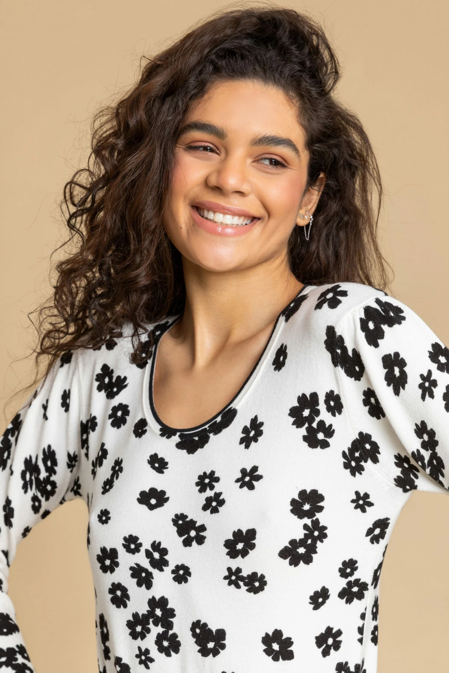 Step into the new season in style with a spring in your step and a pop of print! This beautifully feminine floral print jumper is a wardrobe staple for all year round. Finished with a comfy crew neckline and 3/4 length sleeves, it can be dressed up or down to suit the occasion. Style this statement floral sweater with jeggings and pumps for a go-to casual ensemble.