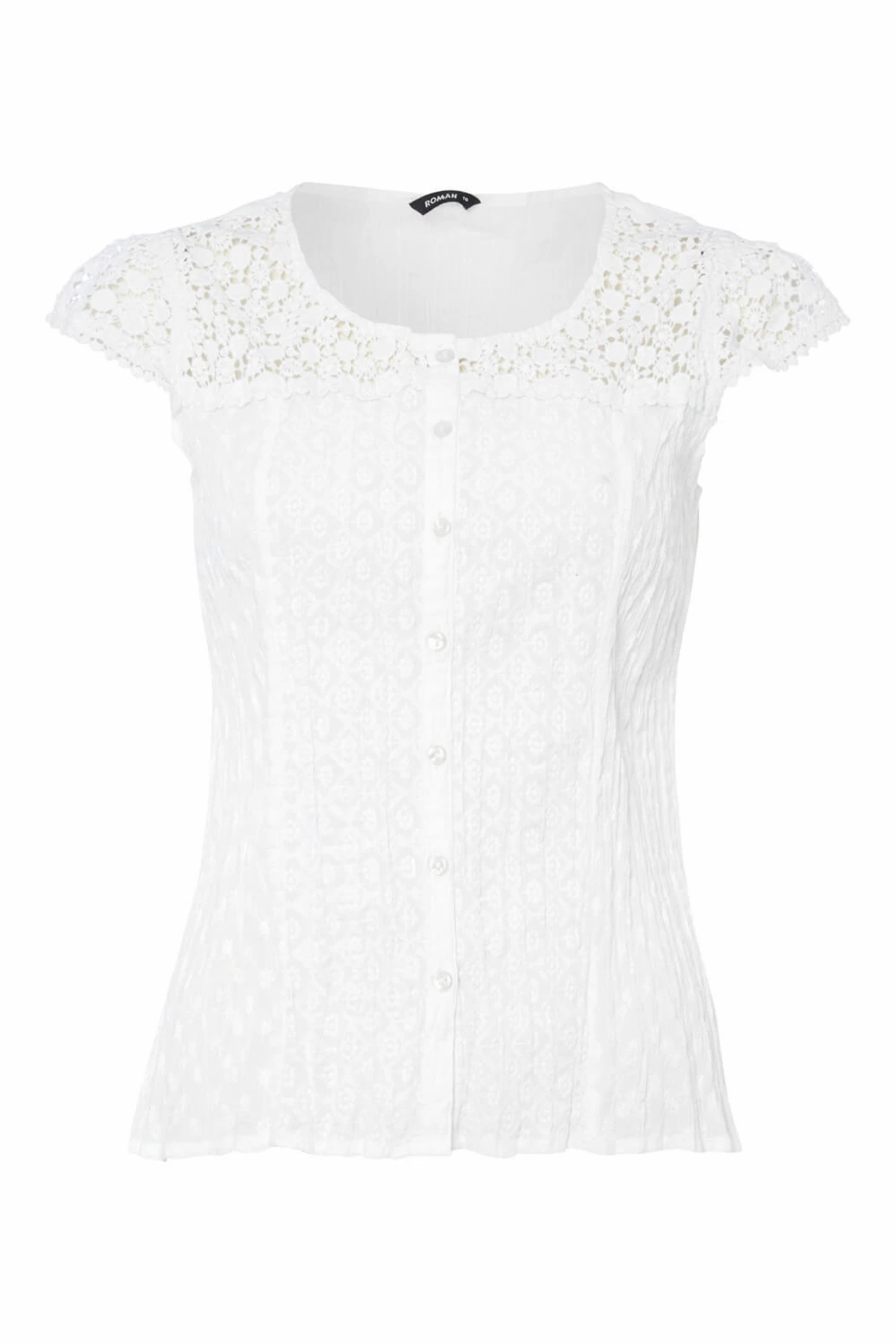 Roman White Lace Yoke And Sleeve Crinkle Blouse