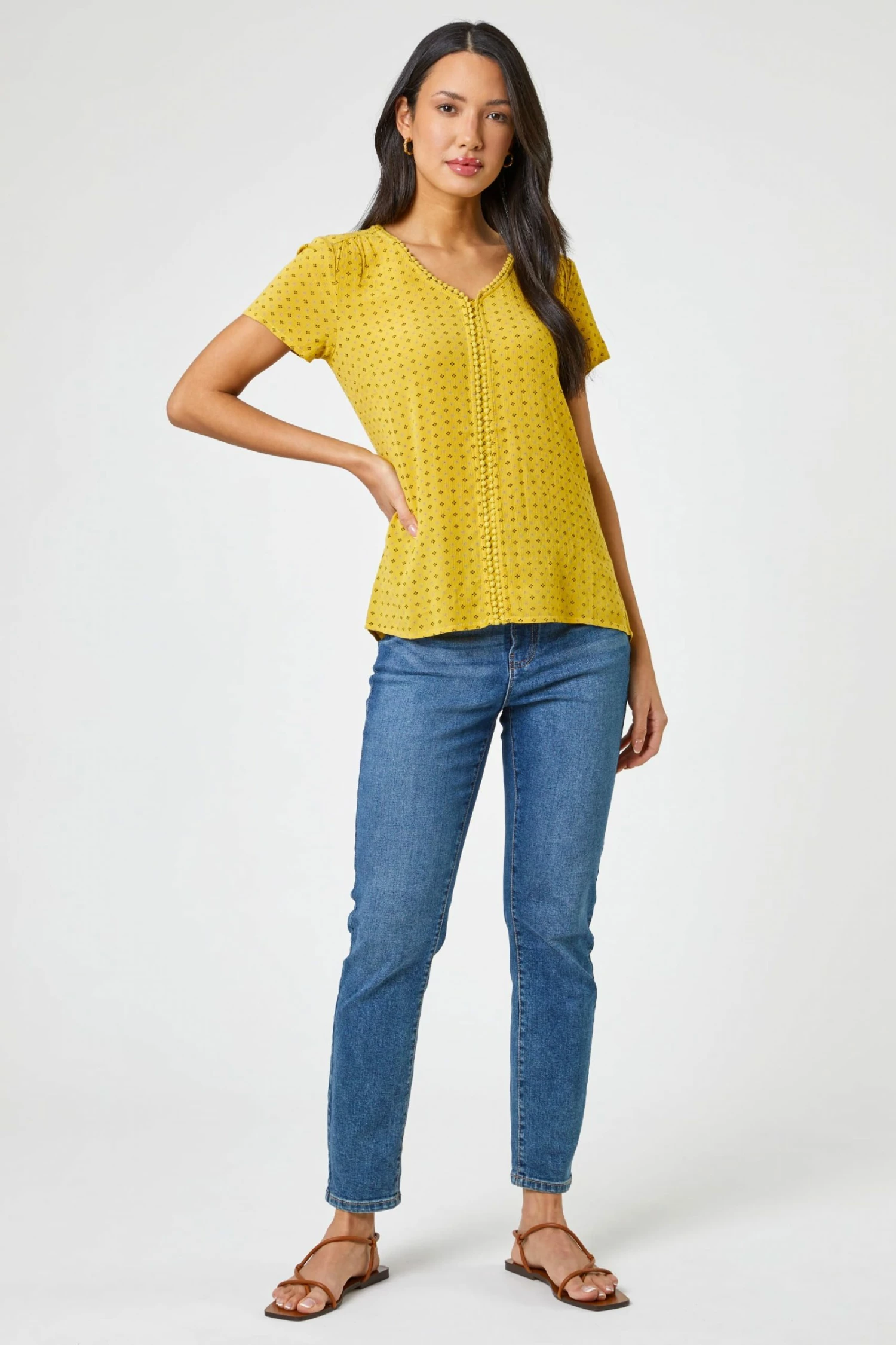 Add some flair to your wardrobe this season with timeless silhouettes and ditsy prints. Cut to a relaxed fit, this woven top has an all-over print featuring an elegant embroidery detail to the neckline that falls to the waist. Finished with short sleeves, you can make sure to pack this beauty in your suitcase this summer. Team yours with jeans and trainers for an everyday style or swap for sandals and shorts to get vacation-ready.